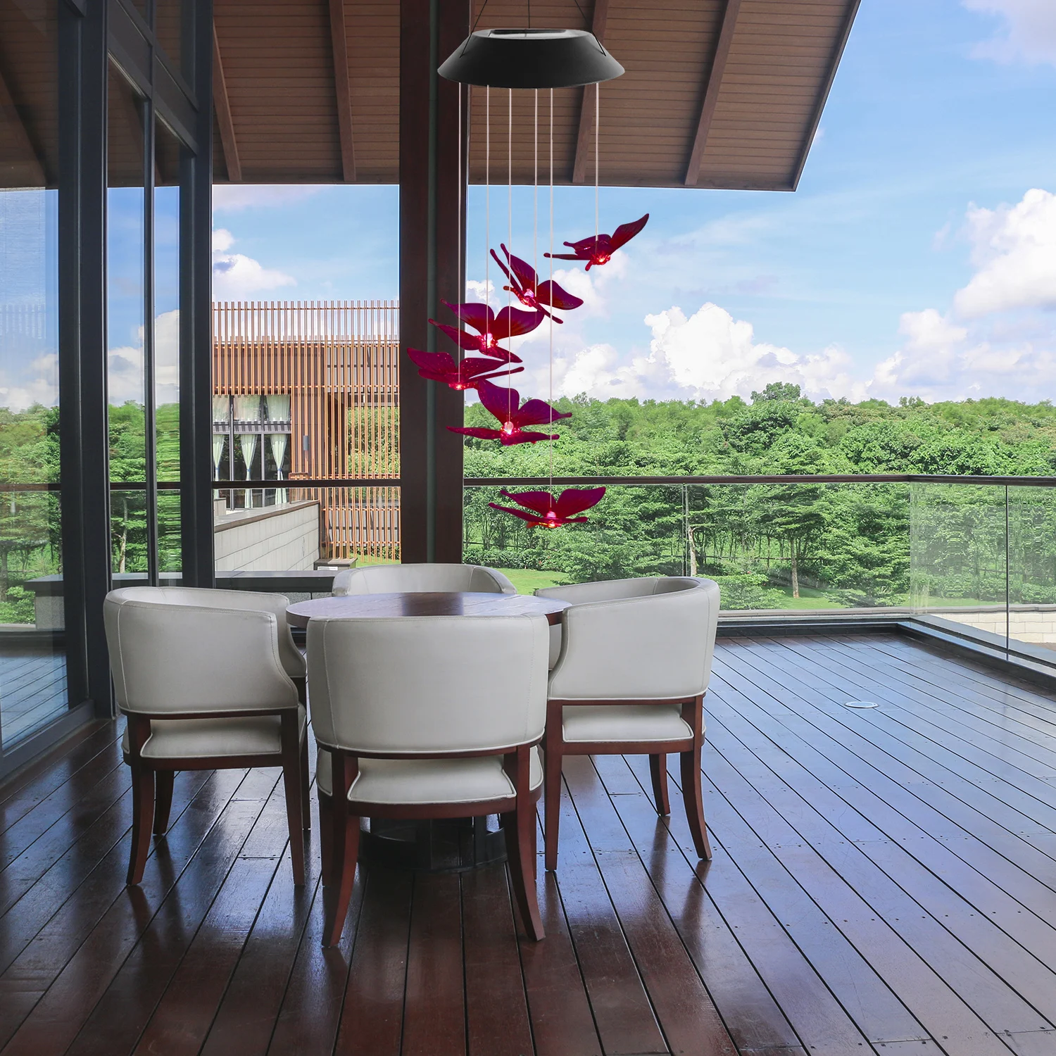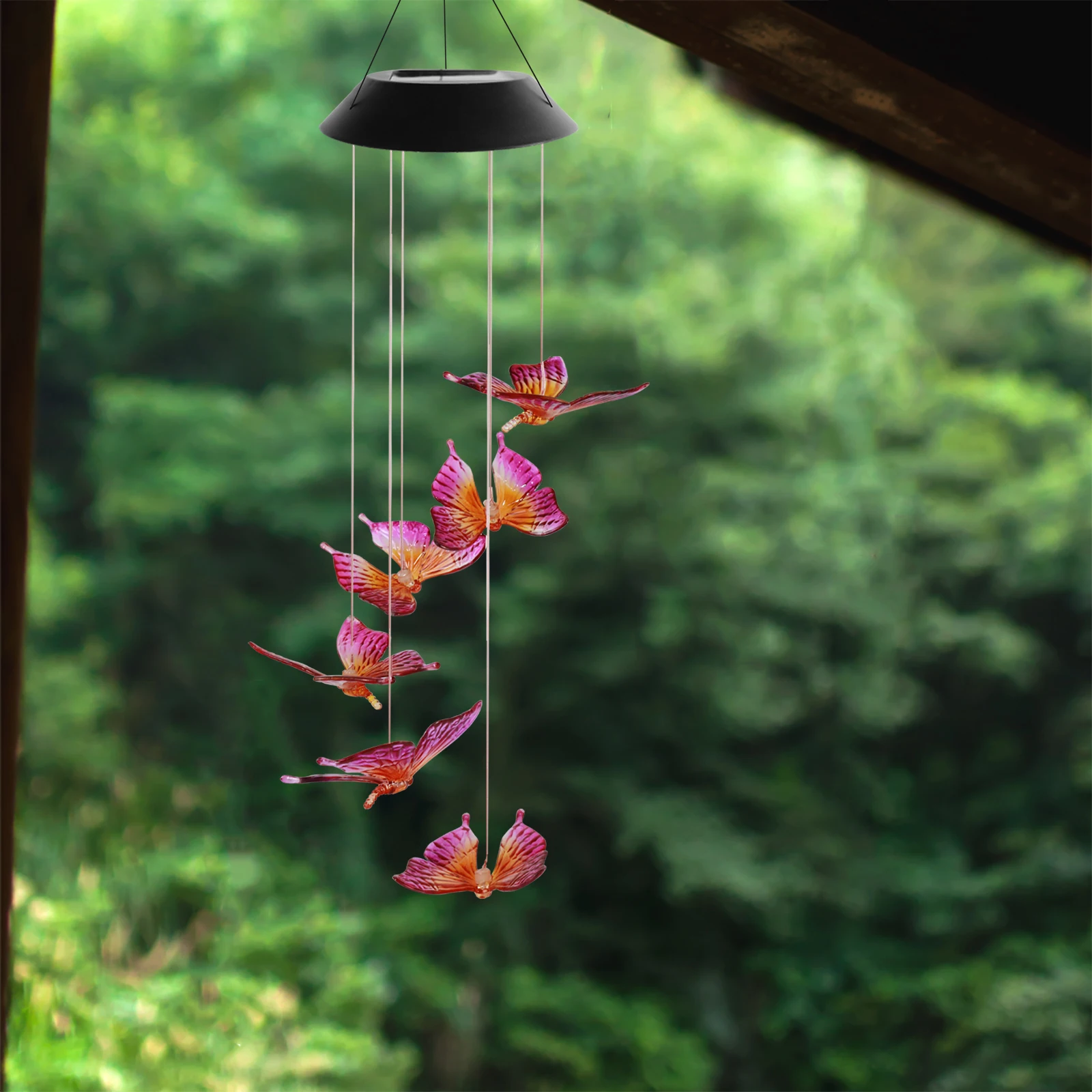 SOL2010F Color Changing Solar Red Pink Butterfly Wind Chime Light LED Hanging Light For Garden Decoration