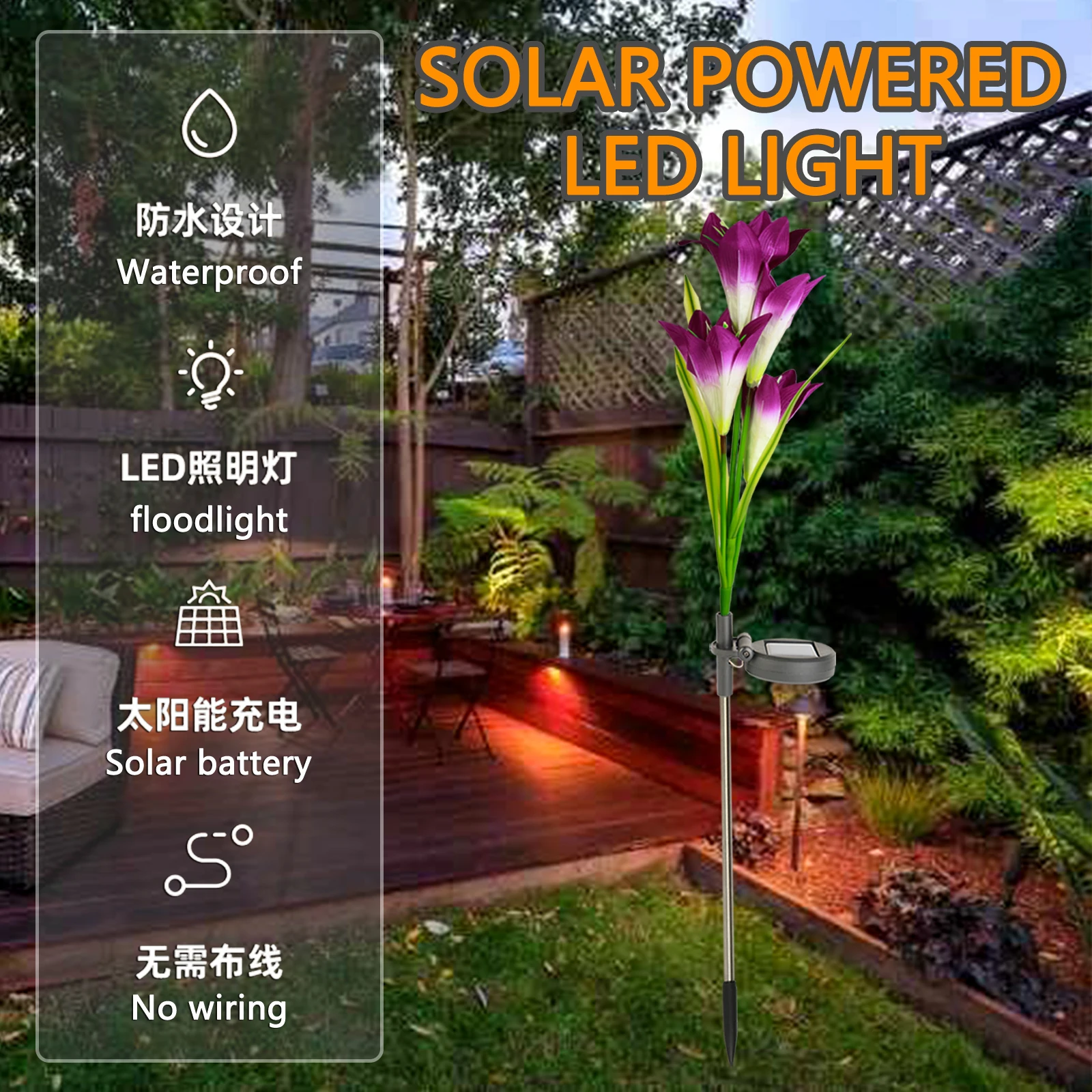 Home Lighting, Artwork & Interior Decoration Accessories Party Lighting Solar Decorative Lights Quanzhou Aolaigle Electronic Co., Ltd. GL40A98 Solar Purple Lily Ground Insert Hot Sale Decorative Outdoor Lights Waterproof Garden Lights Led Home Decorative