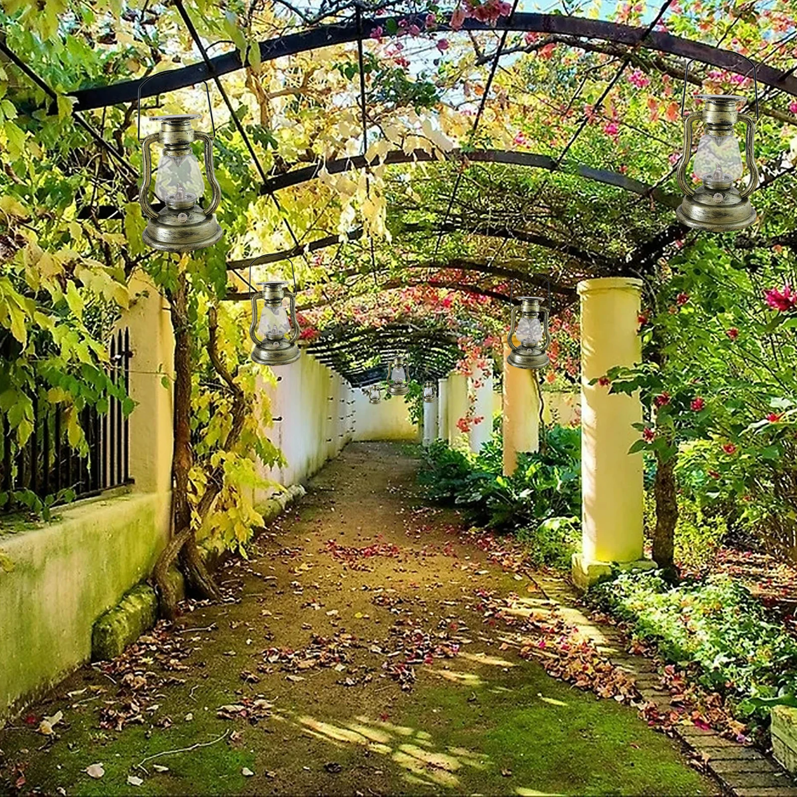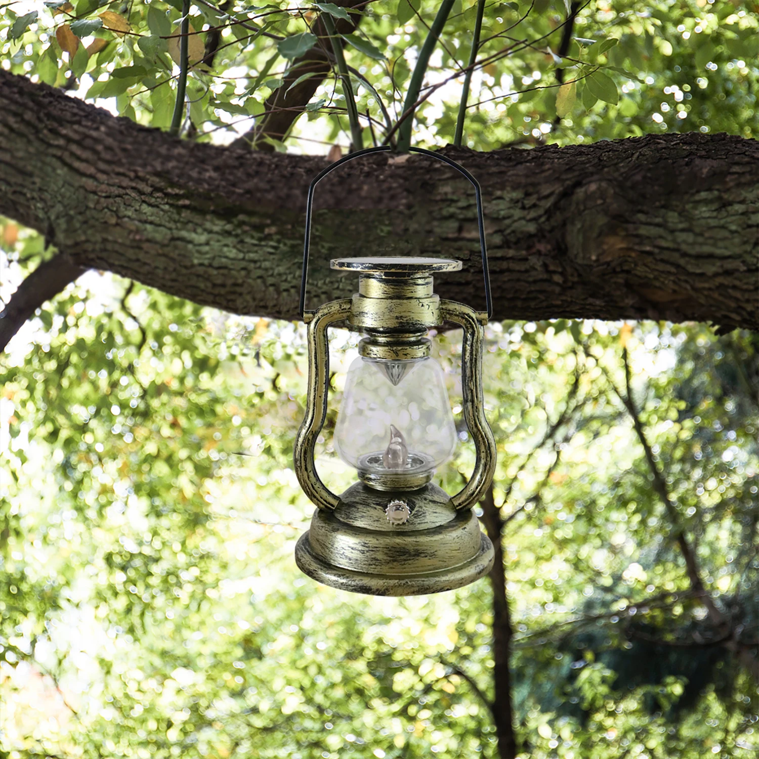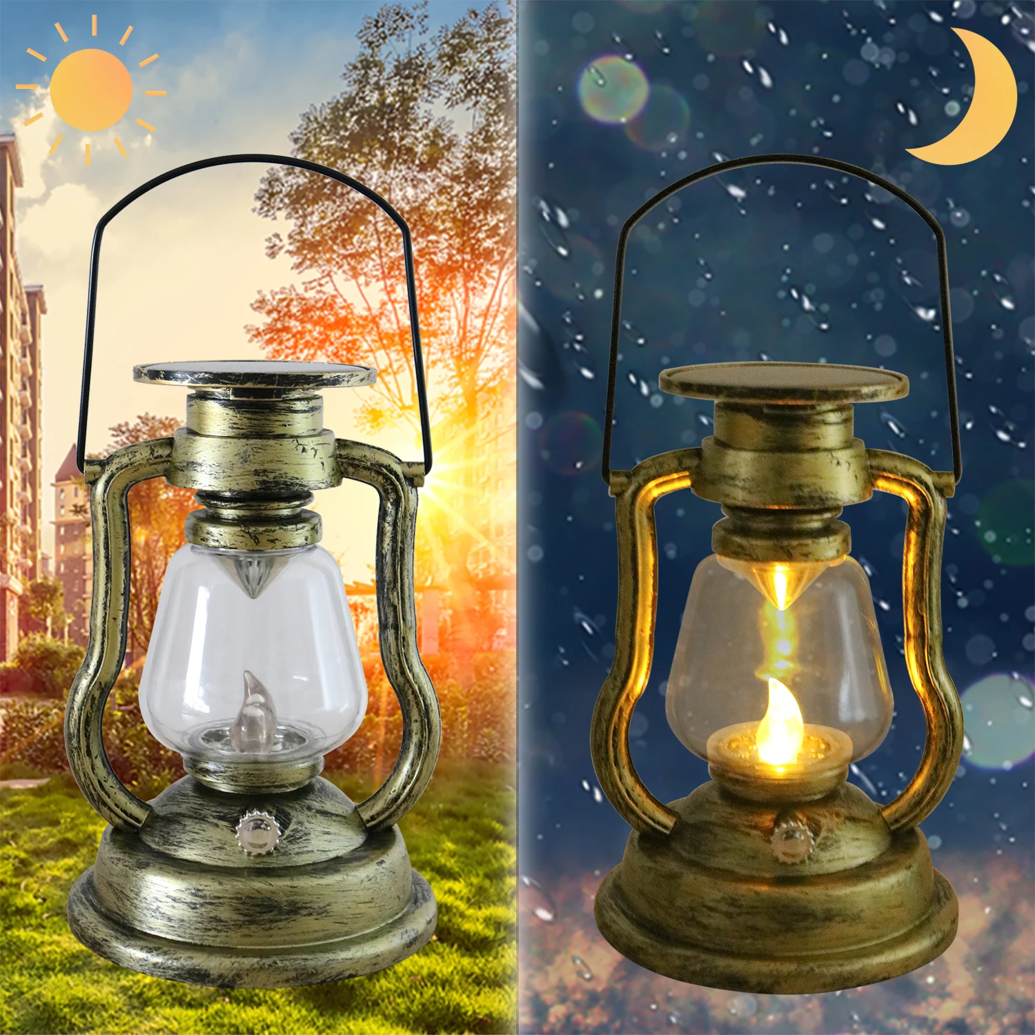 SPL3159F Exquisite Solar Waterproof Metal Flame Simulation Yellow Flashing Oil Lamp For Garden Decoration