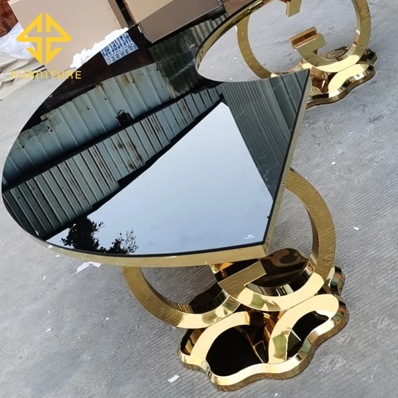 Home Office,Conference,School & Restaurant Furniture Restaurant Furniture Restaurant Tables SAWA FURNITURE LIMITED SAWA factory sells luxury stainless steel table legs and glass table top semi-circular dining table and chairs for events in ban
