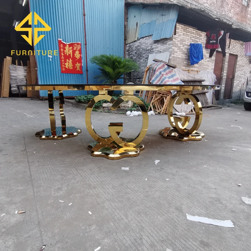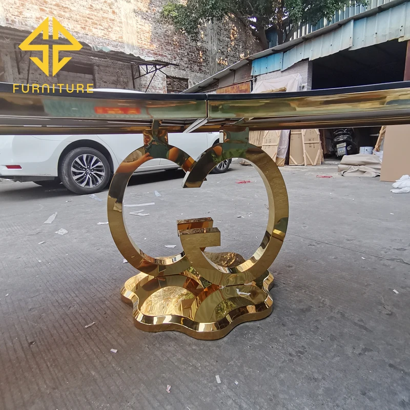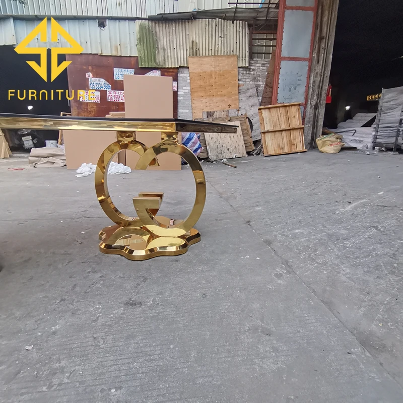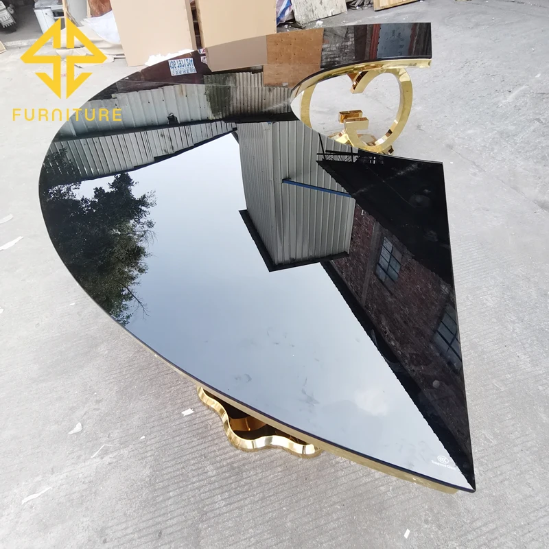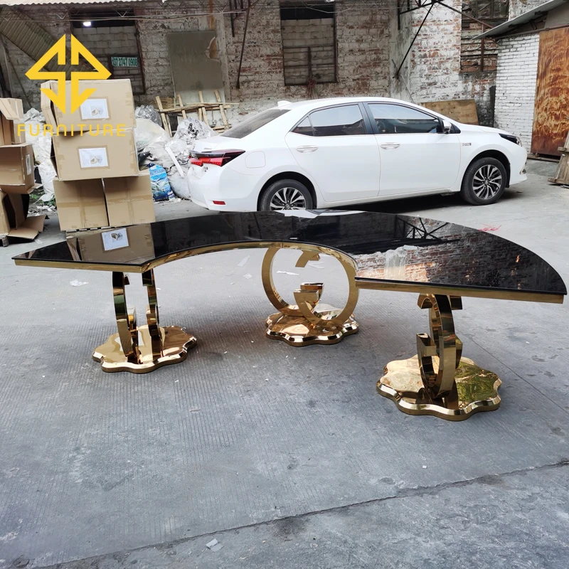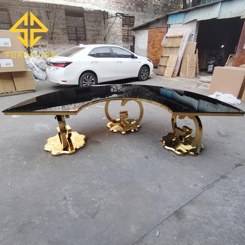 SAWA factory sells luxury stainless steel table legs and glass table top semi-circular dining table and chairs for events in ban