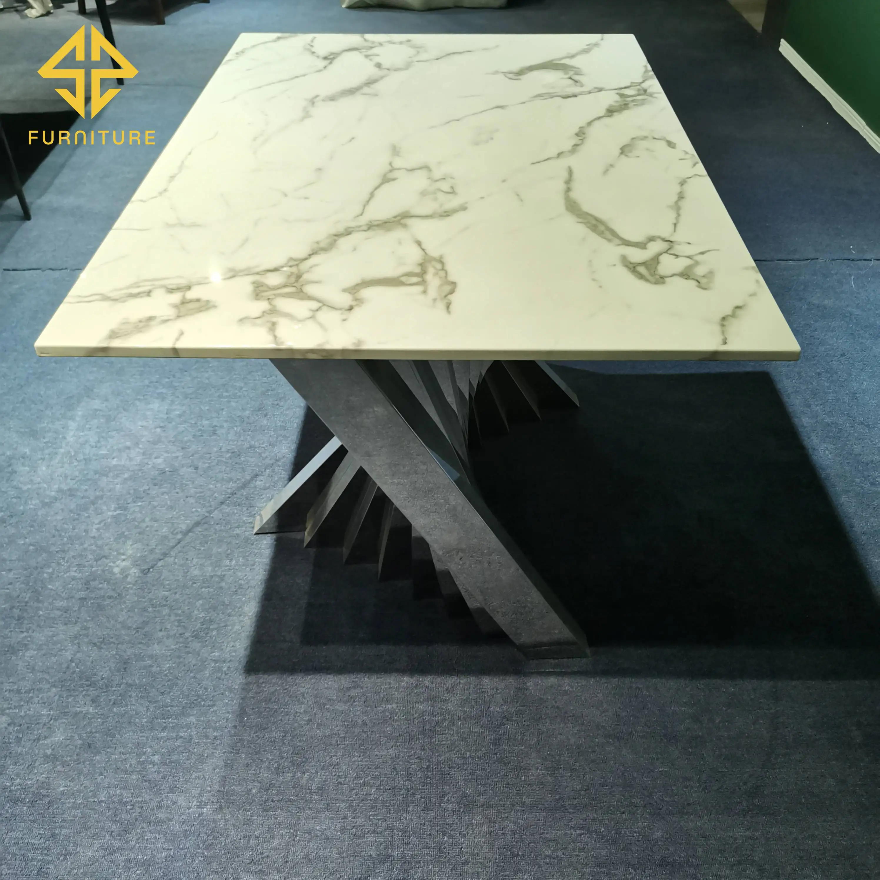 Home Office,Conference,School & Restaurant Furniture Restaurant Furniture Restaurant Tables SAWA FURNITURE LIMITED Modern design marble top banquet table stainless steel leg dining room table sets for wedding