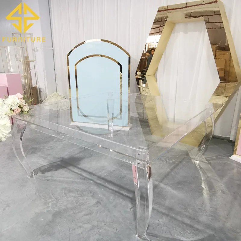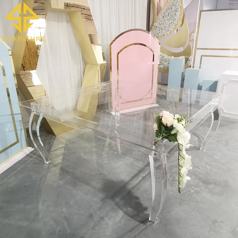 New coming crystal clear acrylic square dining table for wedding banquet event used
