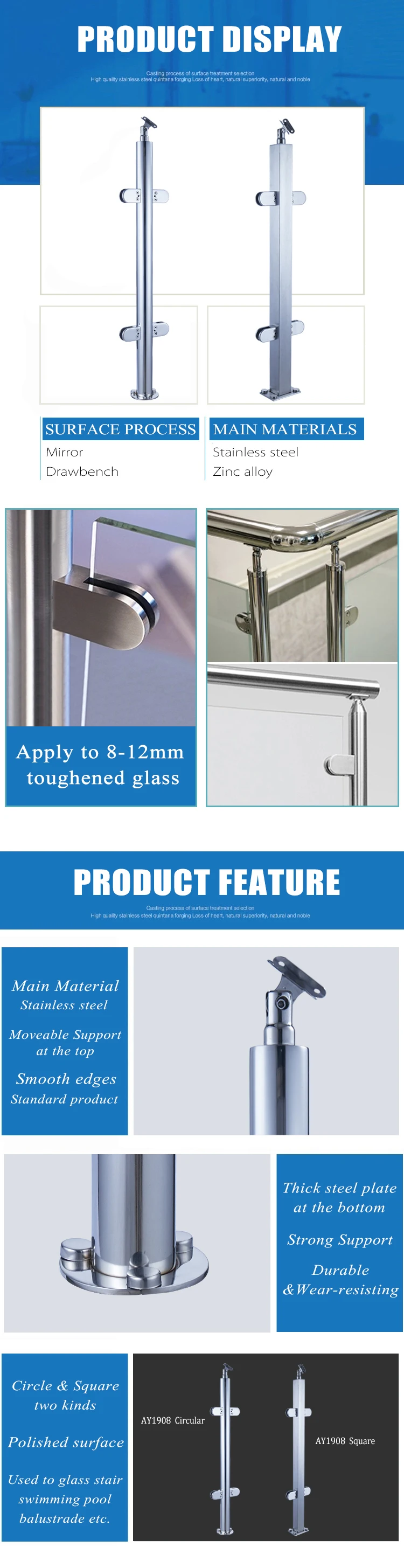 Home Staircase,Railing,Curtain Walls,Steel Structure & Prefabricated Houses Railing Railing & Handrail Accessories Gaoyao Aoyu Glass Hardware Co., Ltd. High Quality Tempered Glass Balustrade Handrail Stainless Steel 304 Glass Stair Handrail Accessories