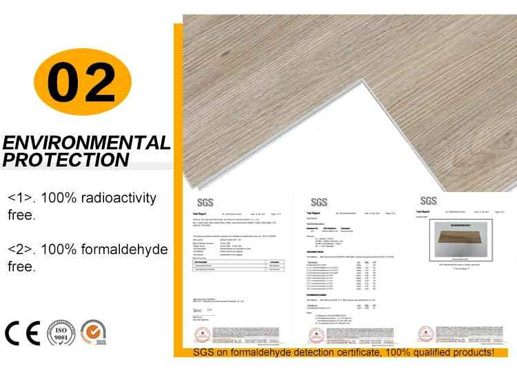 Underlay(Optional):EVA/IXPE(1.5mm/2mm) Wear Layer:0.2mm. (8 Mil.)