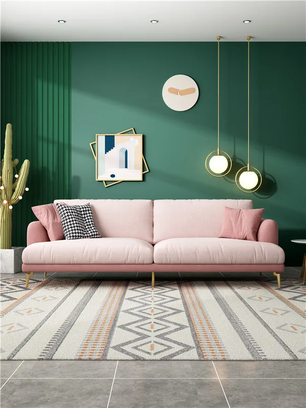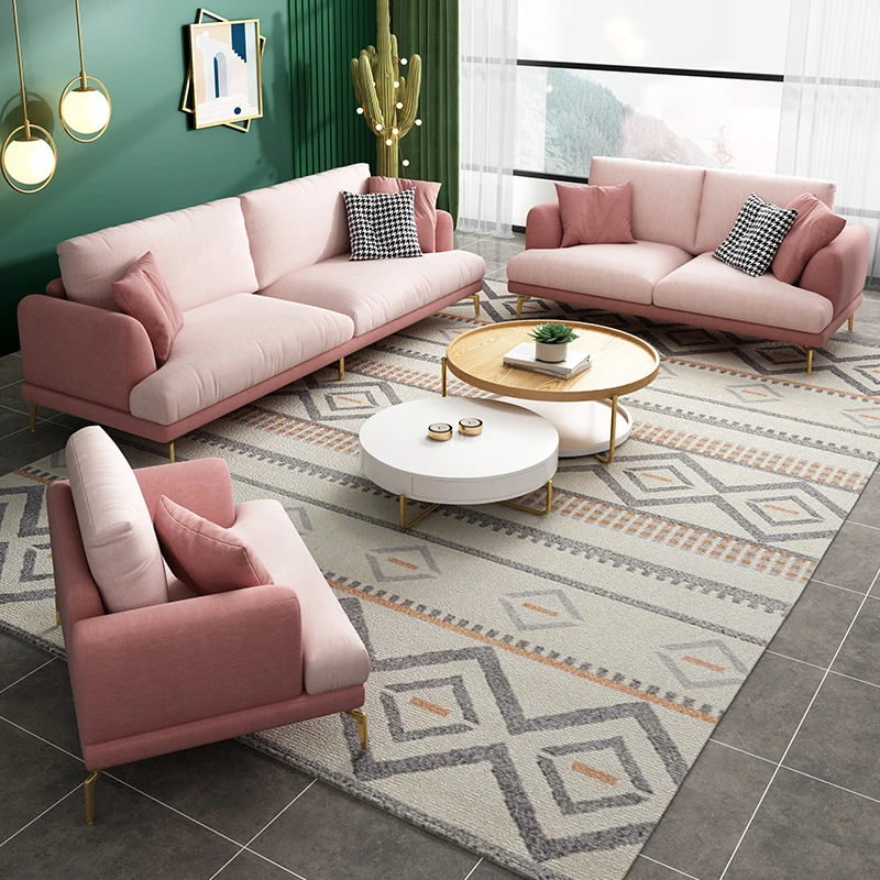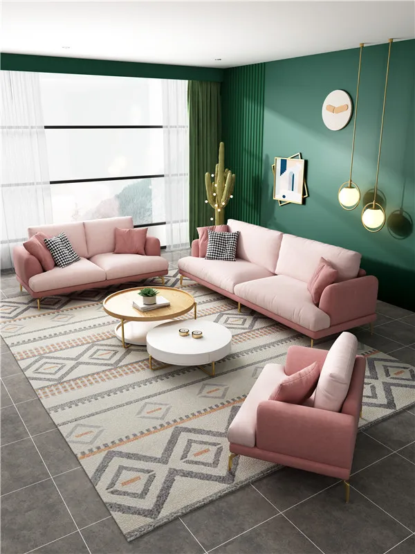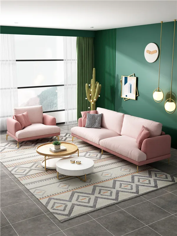 Italian style light luxury minimalist fabric princess pink sofa 2020 new small apartment cute living room sofa combination