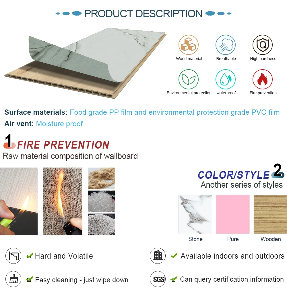 Fireproof Fabric PVC wall panel cladding high quality wood plastic composite WPC wall board
