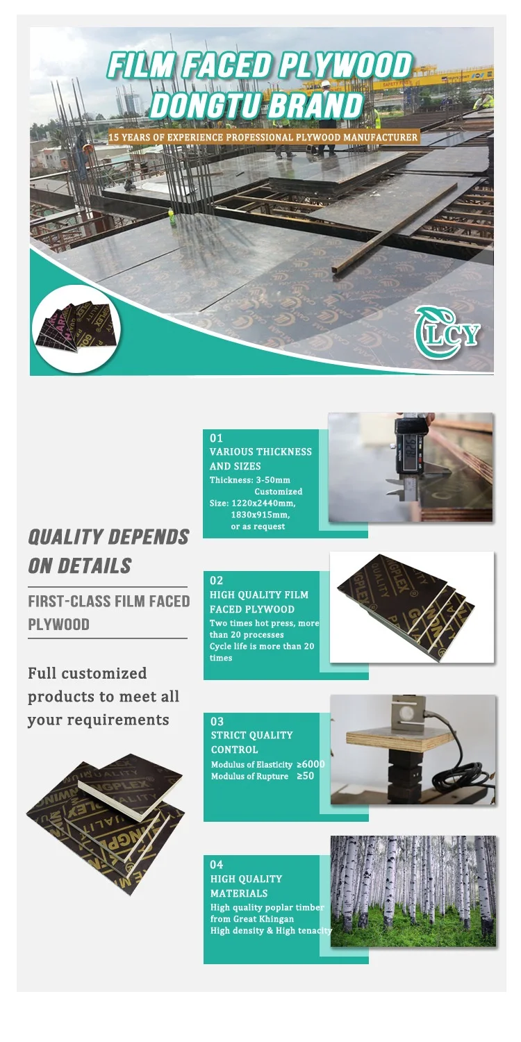 Home Building Auxiliary Materials Wood & Plate Plywood Zhengzhou Dongtu Timber Co., Ltd. Phenolic resin 12mm black browm melamine film faced plywood for construction formwork