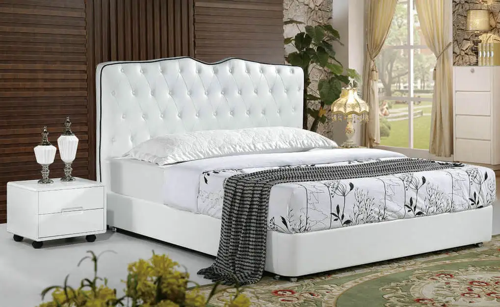 White color Modern Bedroom sets king size genuine leather bed