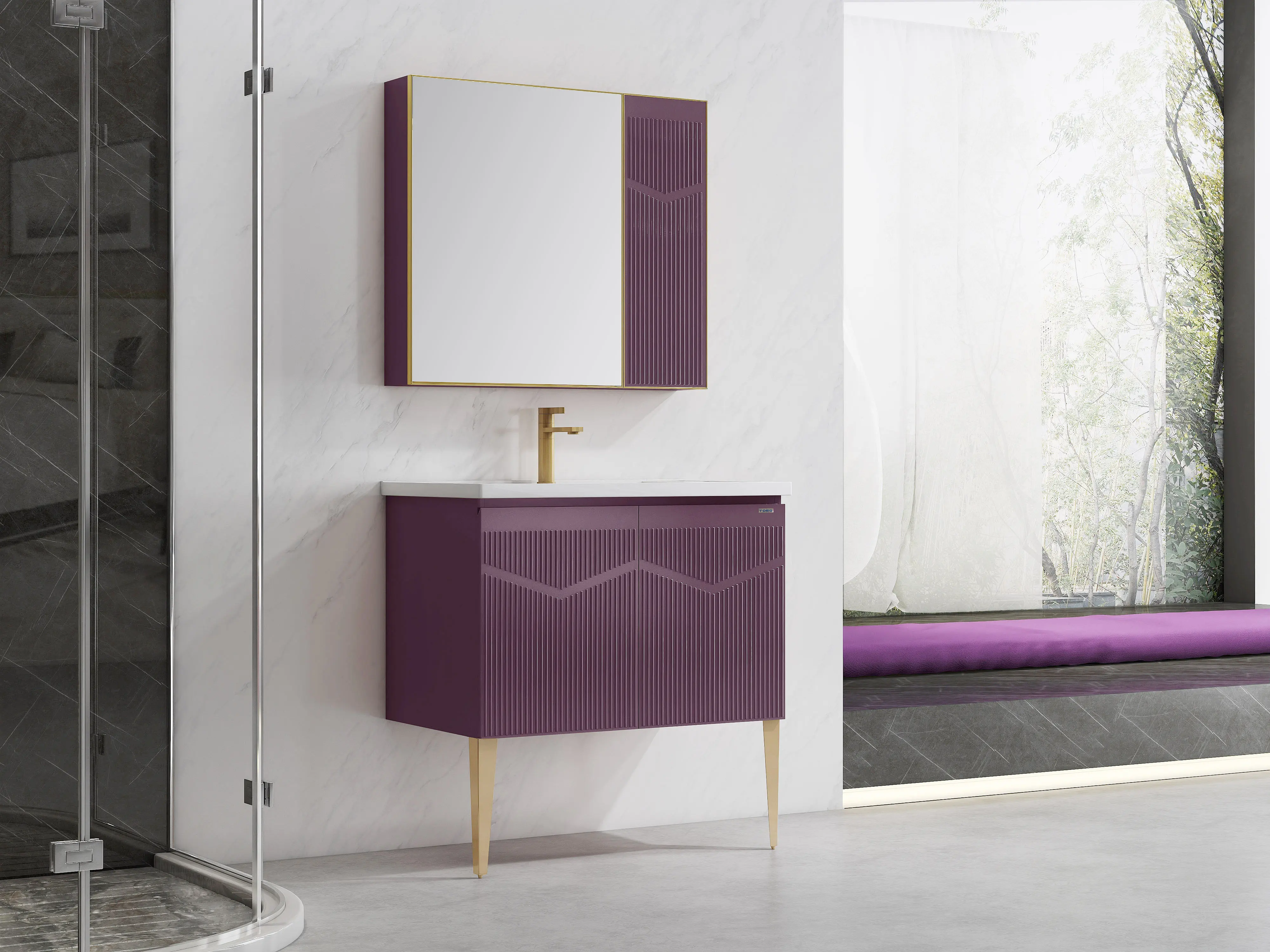 Professional custom small furniture wash basin wall mirror led light storage cabinet set bathroom vanity