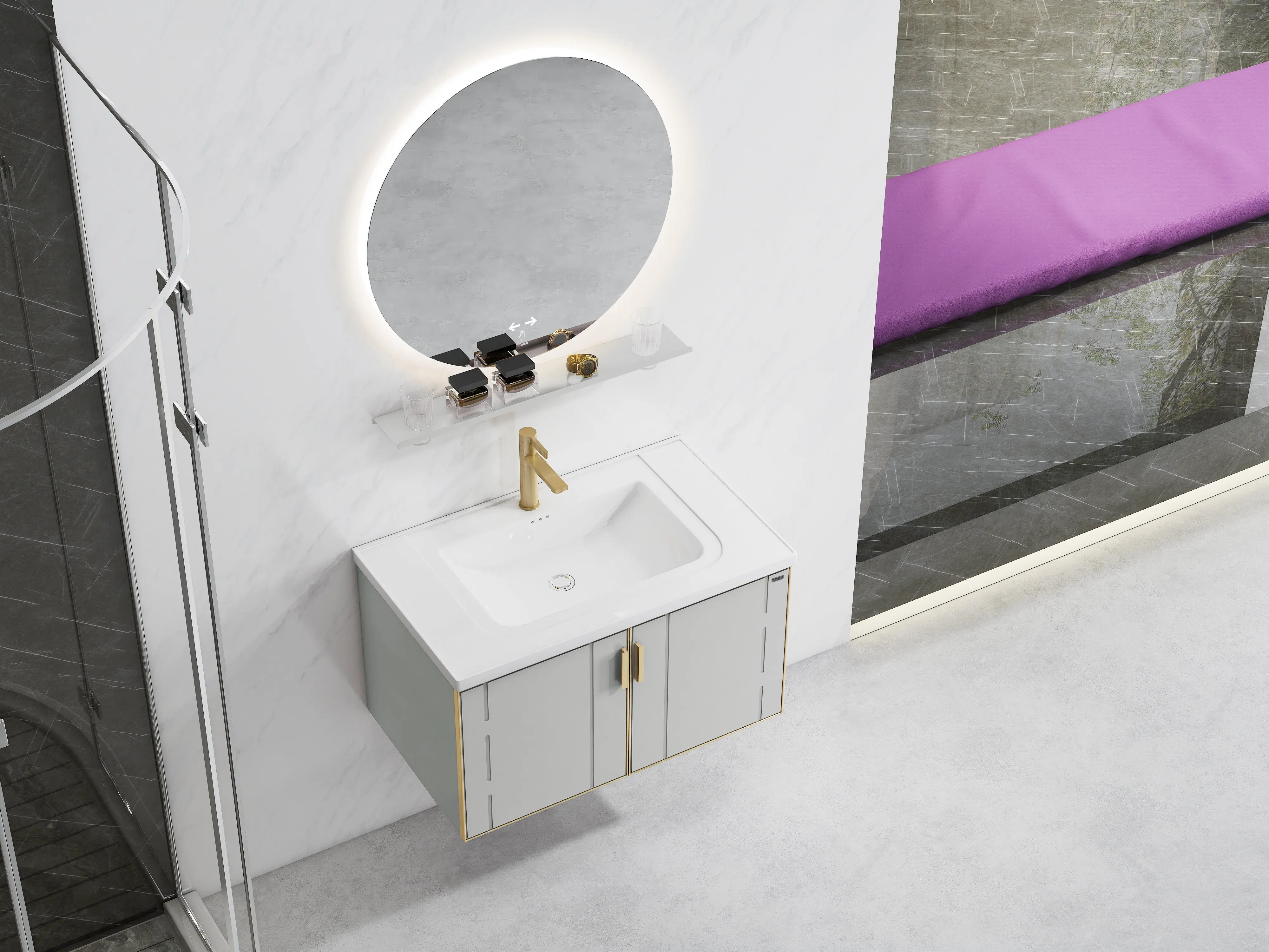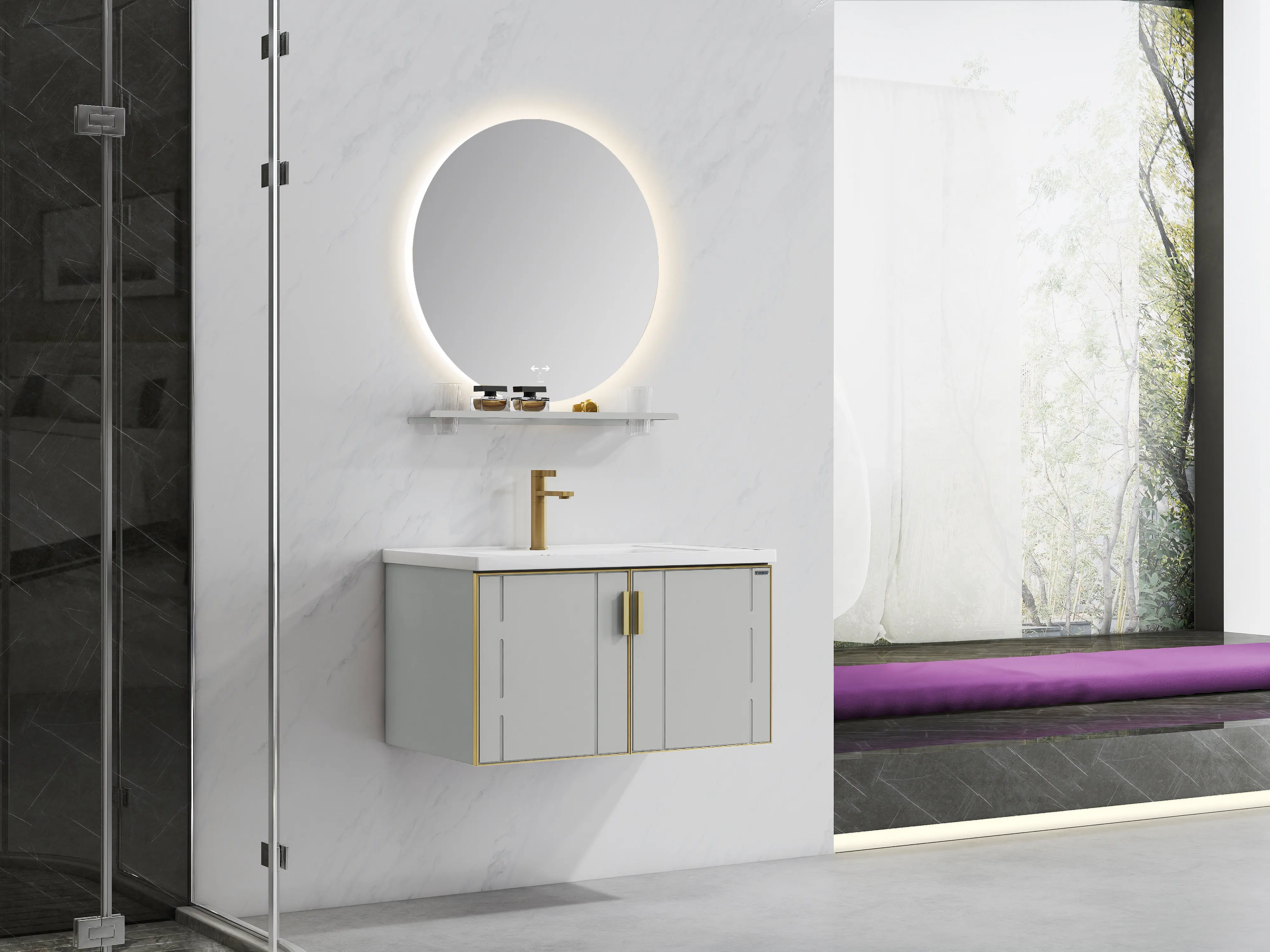 Home Bathroom Products,Sinks Bathroom Cabinets Guangdong Olilecca Sanitary Ware Co., Ltd. Manufactory cheap price professional custom led light bathroom toilet waterproof mirror storage cabinet vanity set