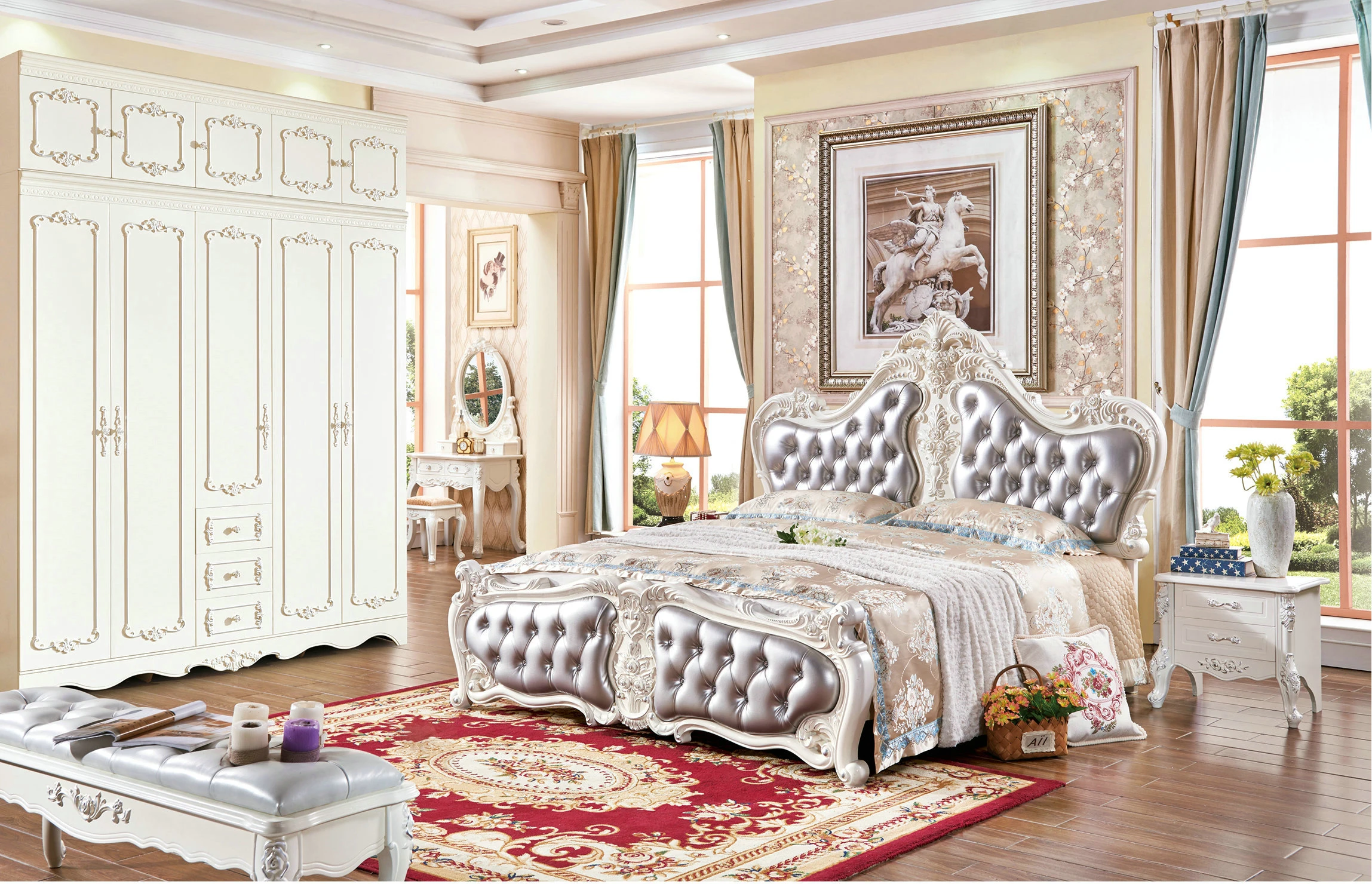 White Color European-Style Master Bedroom Luxury Carved French Royal Leather Bed