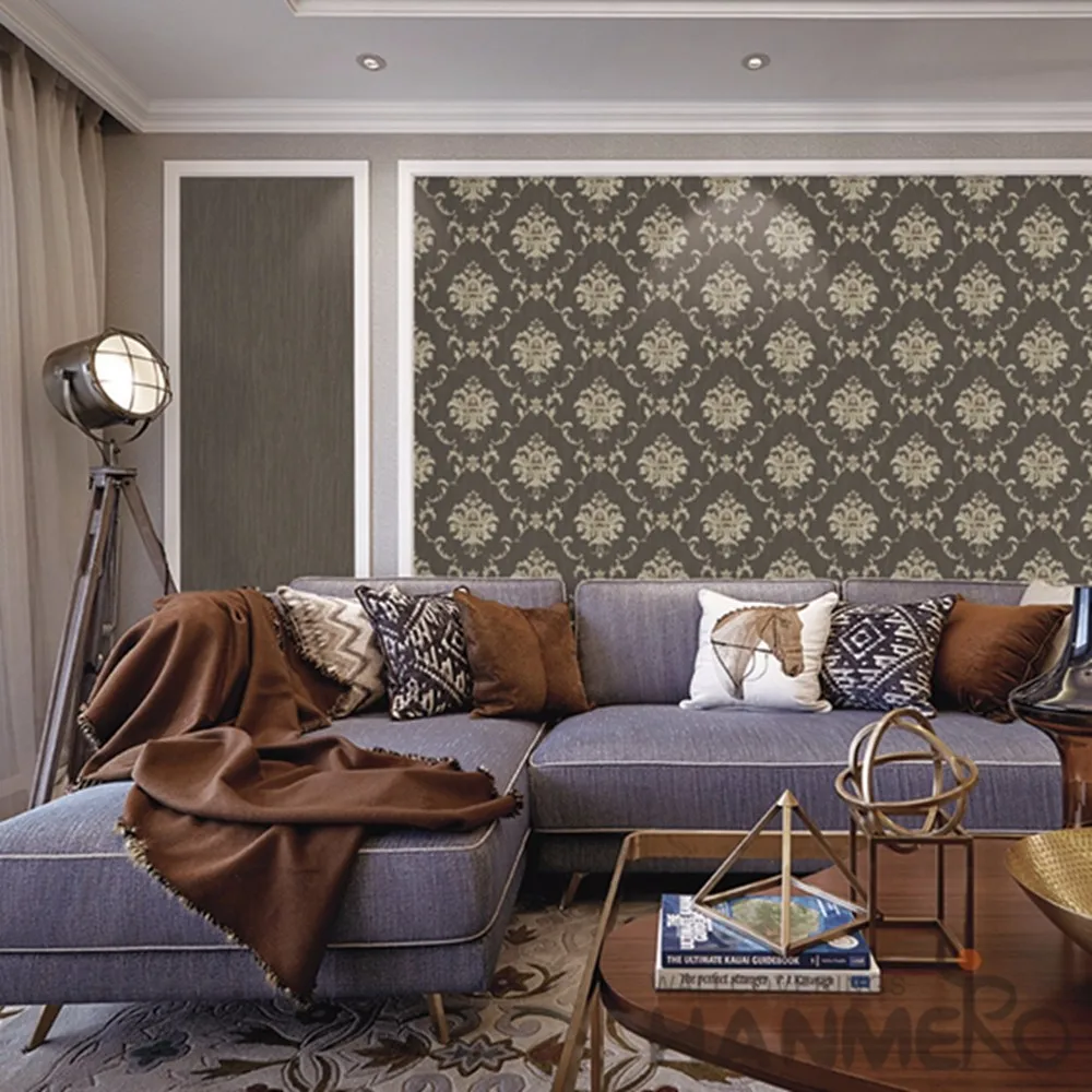 Home Stone,Tiles,Flooring & Walls Material Interior Wall Material Wallpaper Wuhan Hanmero Building Materials Co., Ltd. European 0.53*10M Damask PVC Interior Wallpaper For Adult Room From Chinese Factory