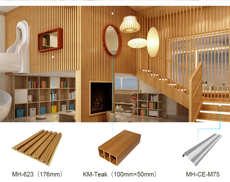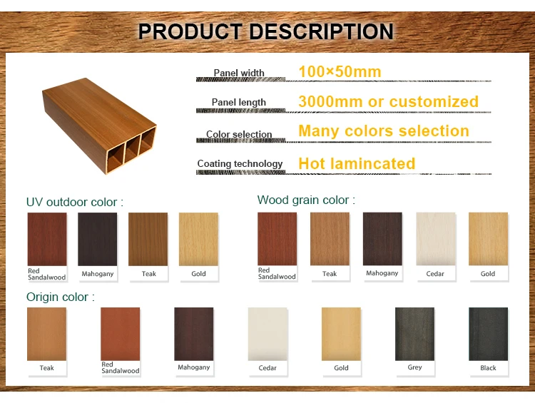 100*50 WPC wood panel China factory interior Decoration Material PVC decking board Coating Wall Panel