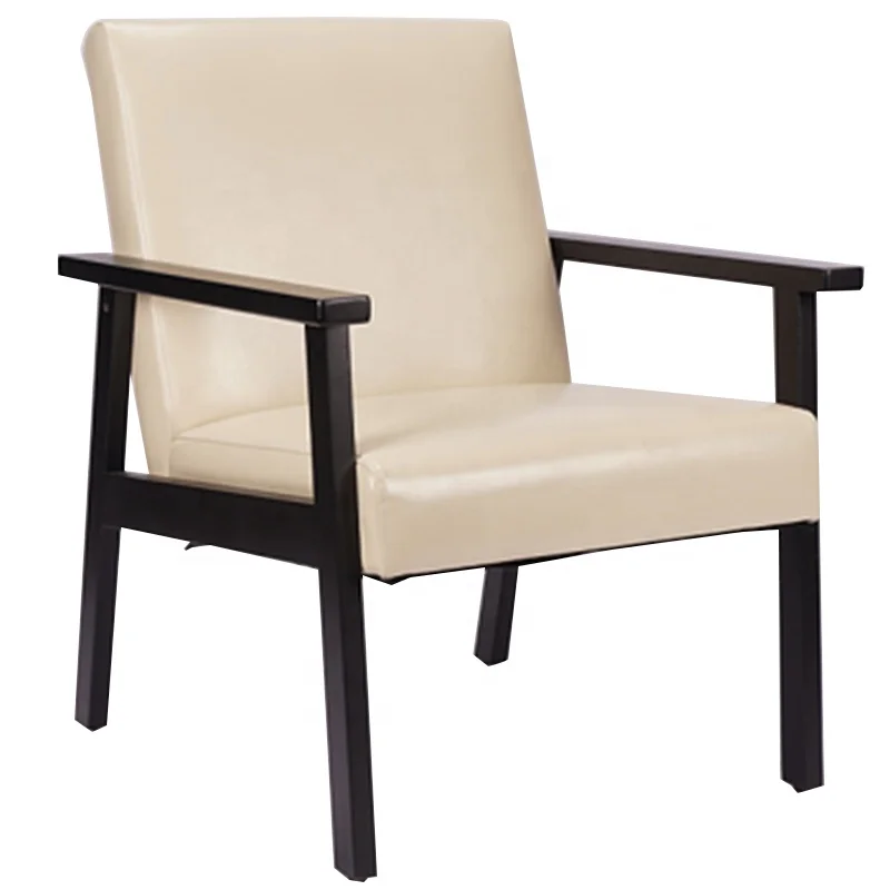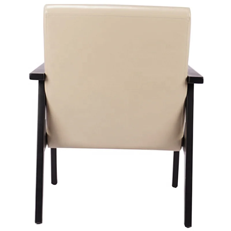 Modern lounge chair: A simple, post-modern design that works well with a variety of styles, this lounge chair is upholstered in white leather with solid rubber wood legs and frame. A fully upholstered seat with exposed dark walnut wood looks great from all angles, whether in a lounge arrangement, public waiting area or private office.