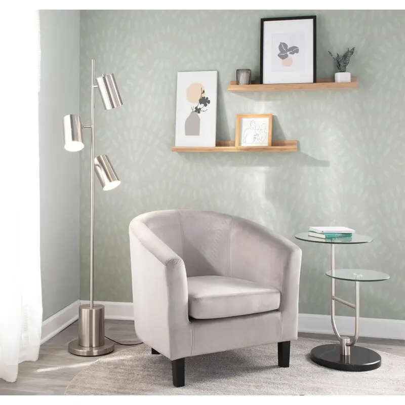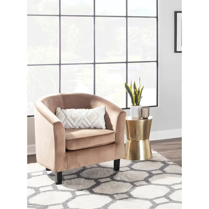 A traditional design gets a contemporary update in this streamlined barrel chair. Founded on a manufactured wood frame, this barrel chair features a curved back, rolled arms, and plastic round tapered legs. Enveloped in easy-to-clean faux leather upholstery, this chair’s high-density foam cushioning provides comfort and support.