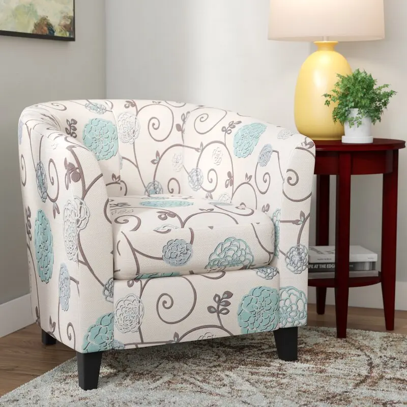 Simple design upholstered soft fabric hotel antique wooden bucket armchair