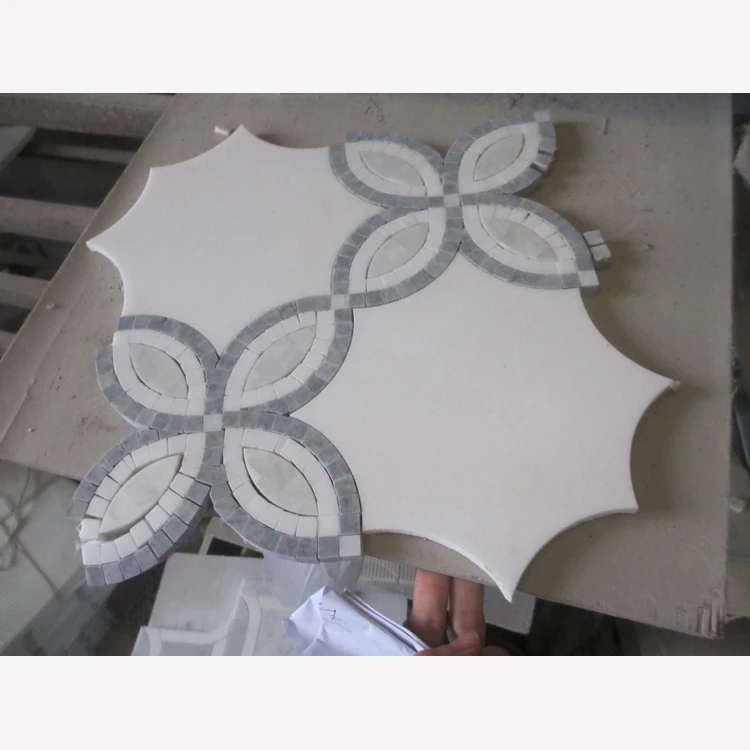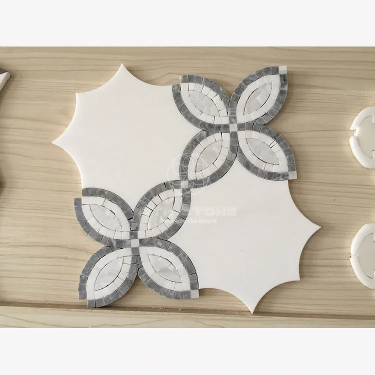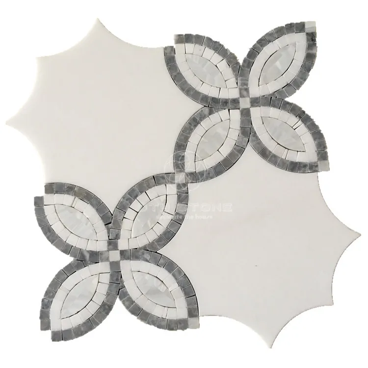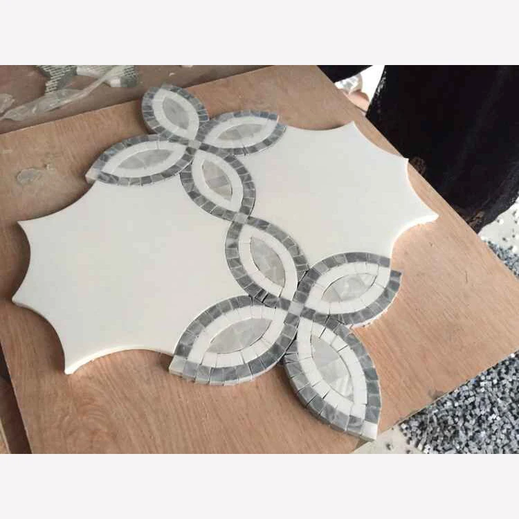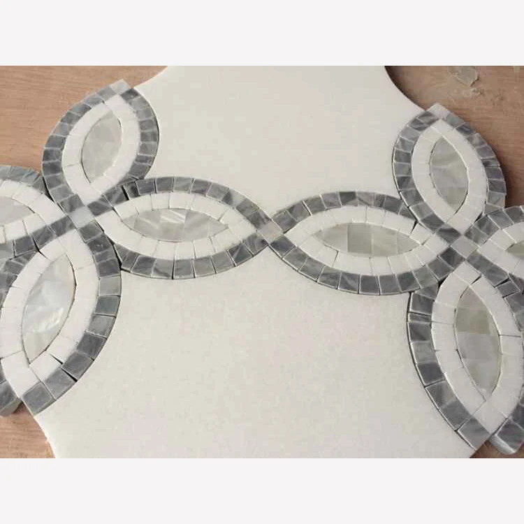 DTH Stone pure white marble mix mother of pearl water jet flower mosaic tile