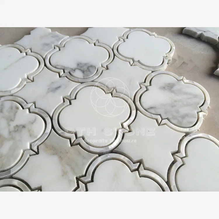 DTH Stone lantern type calacatta marble mix mother of pearl waterjet mosaic