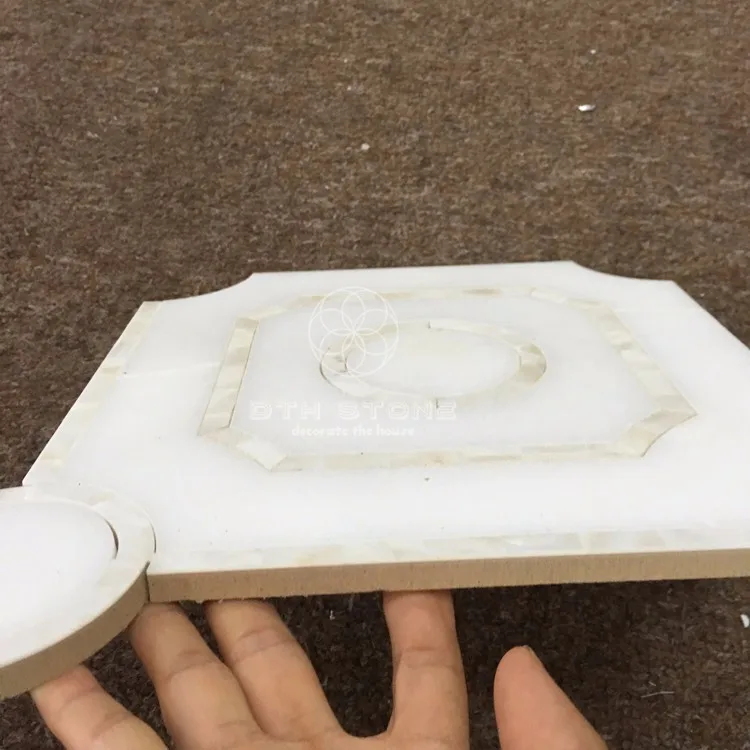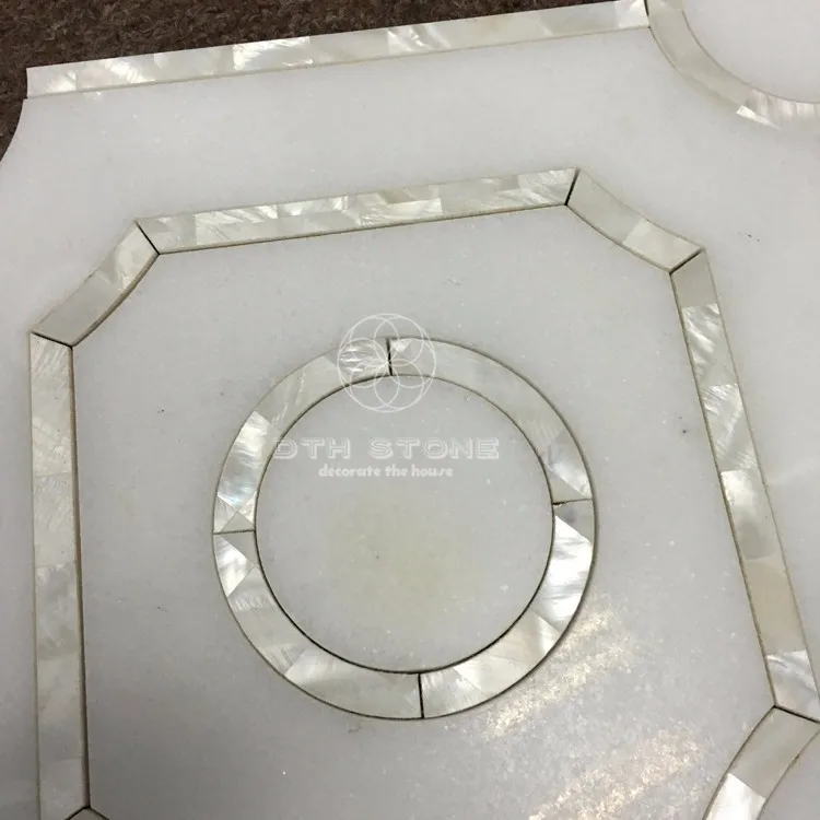 DTH stone pure white marble mix shell water jet mosaic tile backsplash