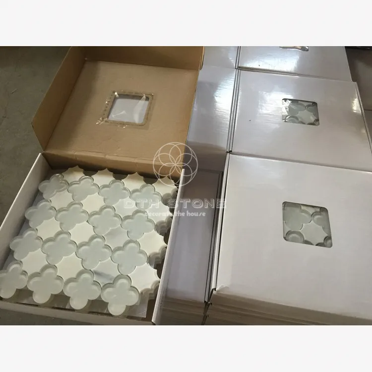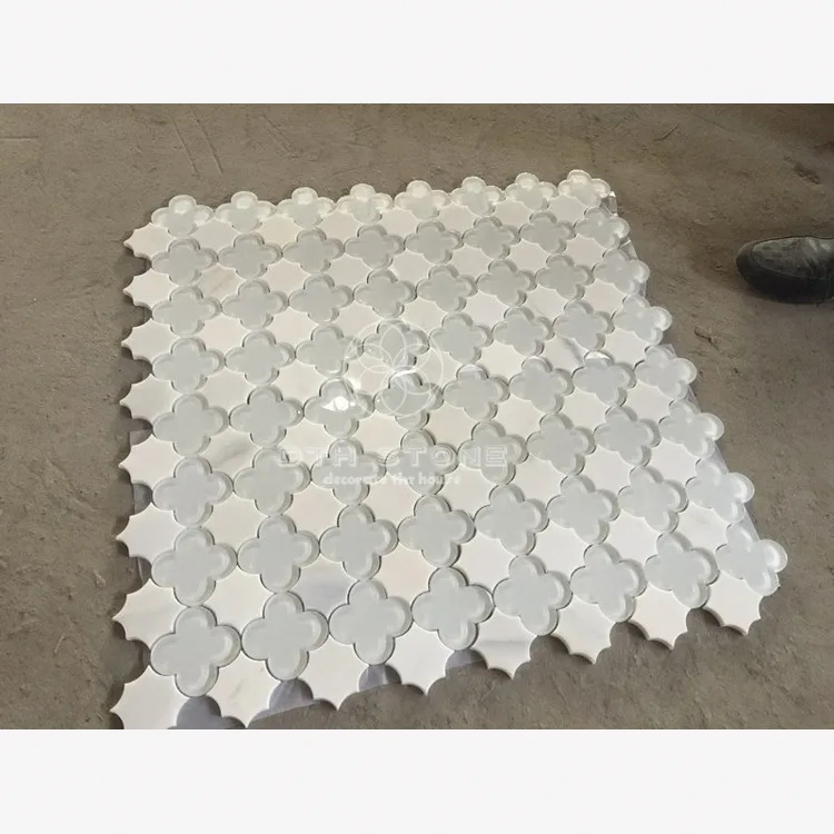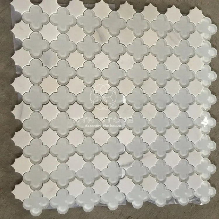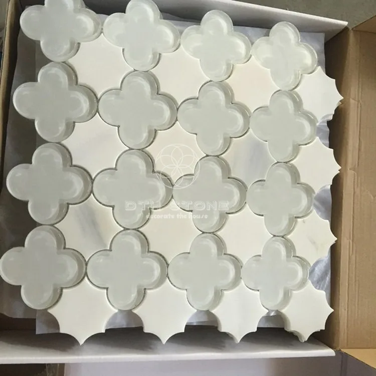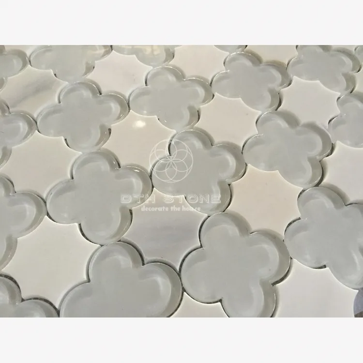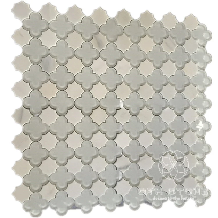 DTH Stone new design white marble mix glass kitchen backsplash flower mosaic tile