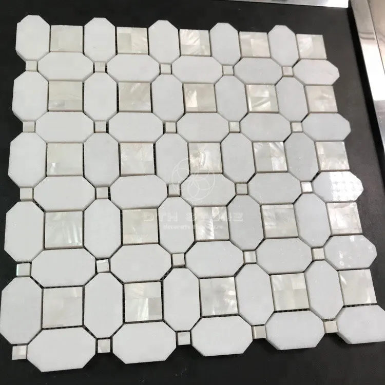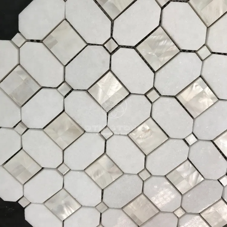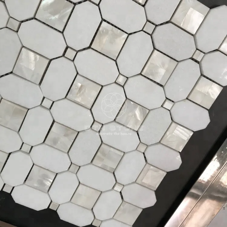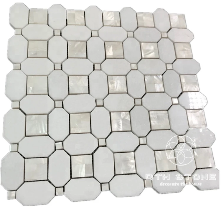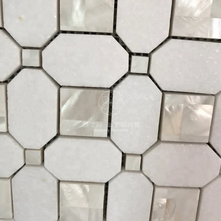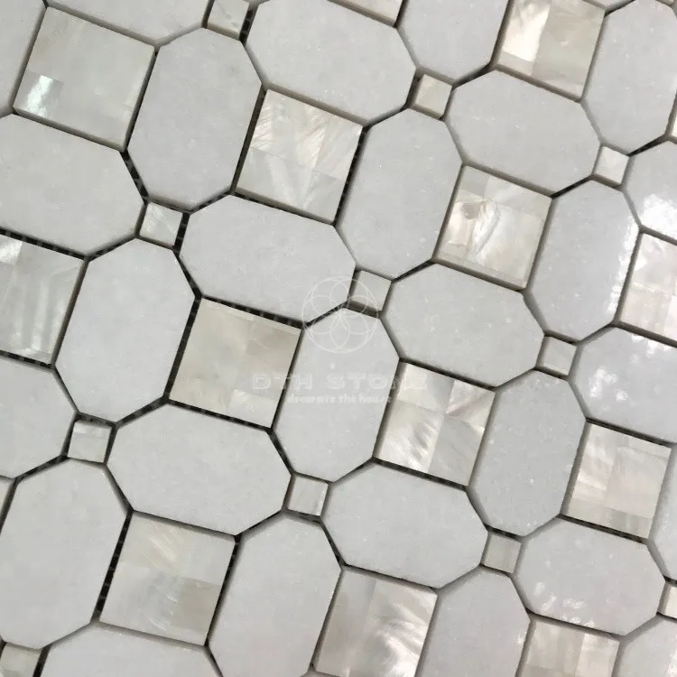 DTH Stone pure white marble mix mother of pearl water jet cut stone moasaic tile