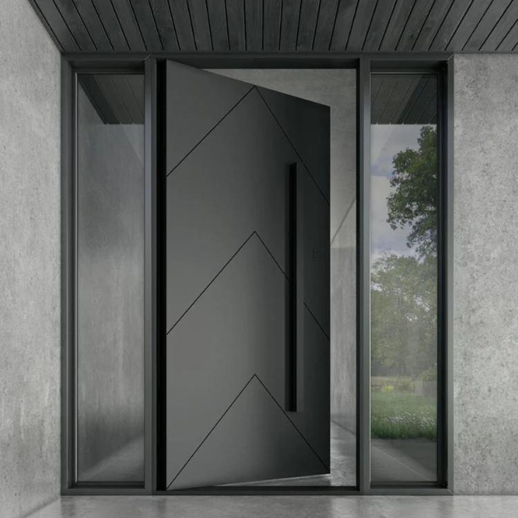 Residential Main Entry Modern Pivot Wood Doors With Sidelights Design