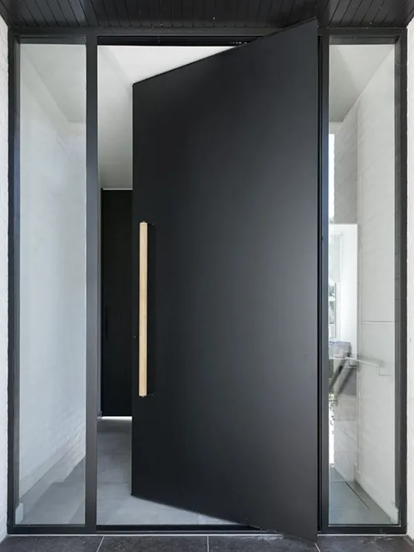 Front entrance solid wood pivot door with sidelights for luxury villa