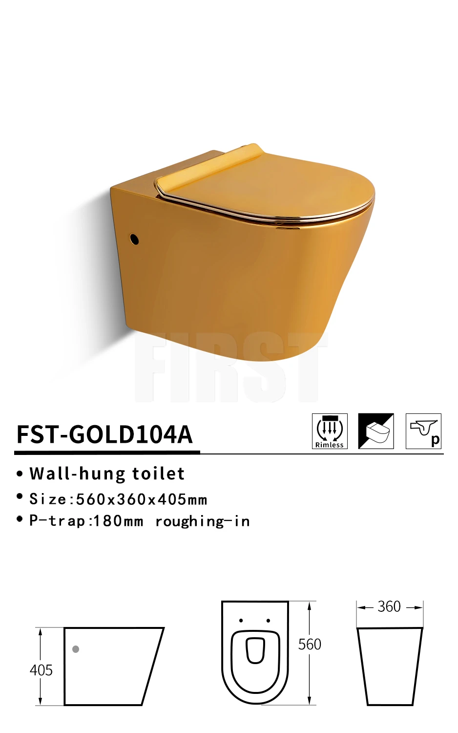 Home Bathroom Products,Sinks Toilet and Others Toilets Guangdong First Import & Export Trade Co., Ltd. FST-GOLD104A Sanitary ware bathroom ceramic gold wall hung toilet