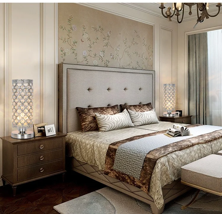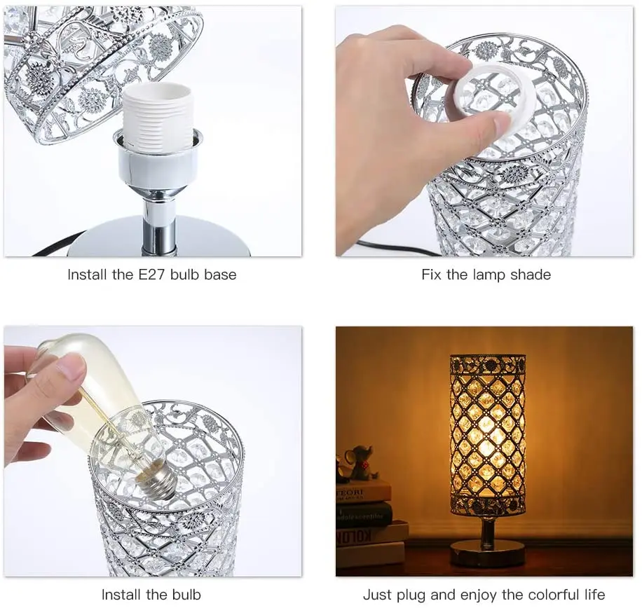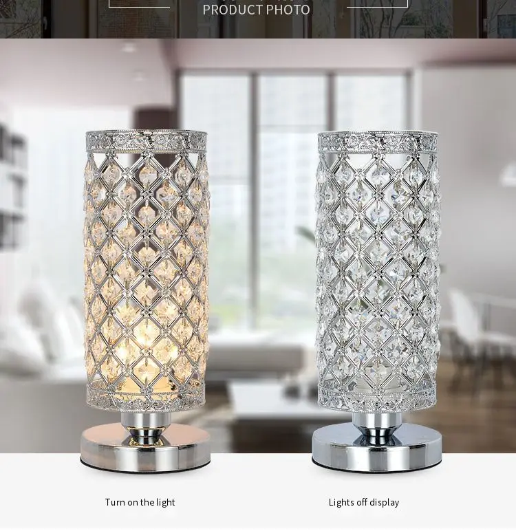 Home Lighting, Artwork & Interior Decoration Accessories Indoor Customized Lighting Desk Lamps Shenzhen Satuo Technology Co., Ltd Sliver Bedroom Nightstand Light Modern E27 Lamp for Living Room,Guest Room,Dresser Table Decoration Crystal Bedside Table Lamp