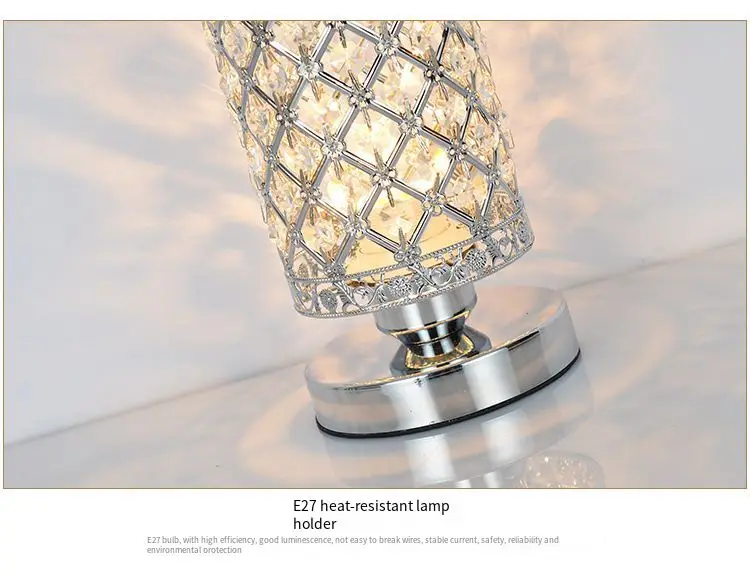 Sliver Bedroom Nightstand Light Modern E27 Lamp for Living Room,Guest Room,Dresser Table Decoration Crystal Bedside Table Lamp