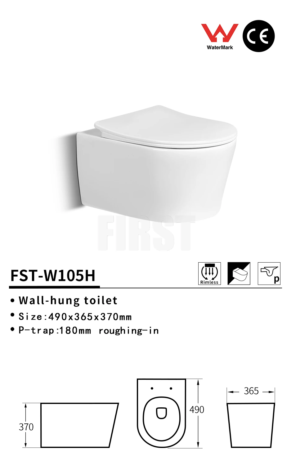 Home Bathroom Products,Sinks Toilet and Others Toilets Guangdong First Import & Export Trade Co., Ltd. FST-W105H Sanitary Ware Bathroom Ceramic Wall Mounted Wc Wall Hung Toilet
