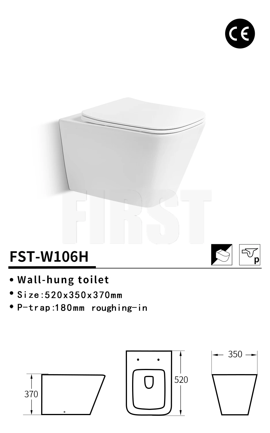 Home Bathroom Products,Sinks Toilet and Others Toilets Guangdong First Import & Export Trade Co., Ltd. FST-W106H Sanitary Ware Bathroom Ceramic Wall Mounted Wc Wall Hung Toilet