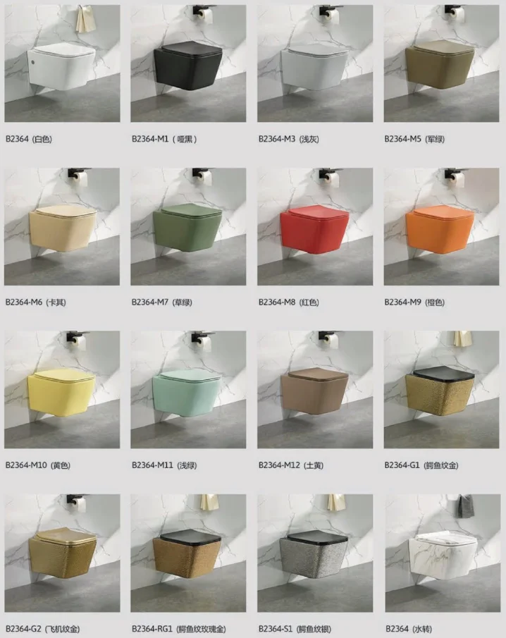 B2364 Sanitary ware bathroom ceramic colorful wc piss wall hung toilet
