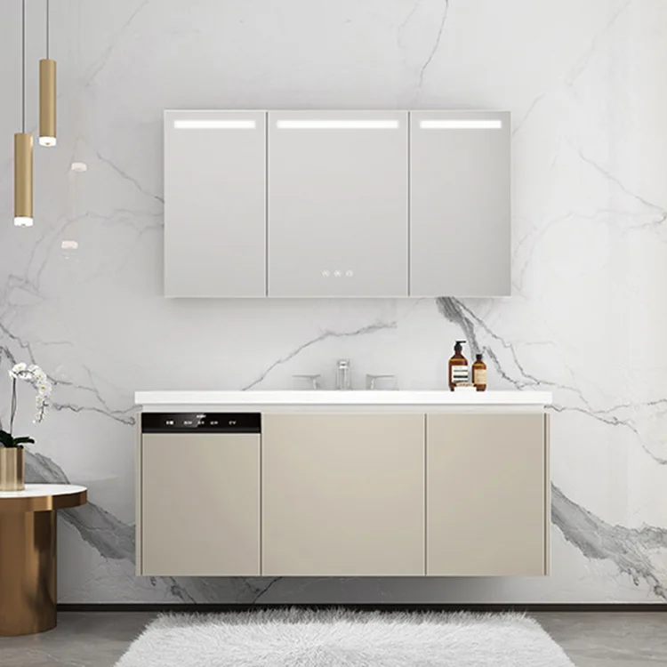 Modern Wall Mounted Bathroom Vanity Cabinet With Heat Preservation/ Disinfection / Refrigeration Functions
