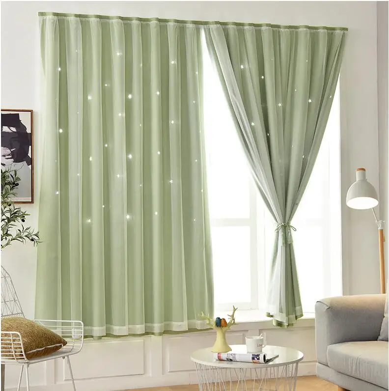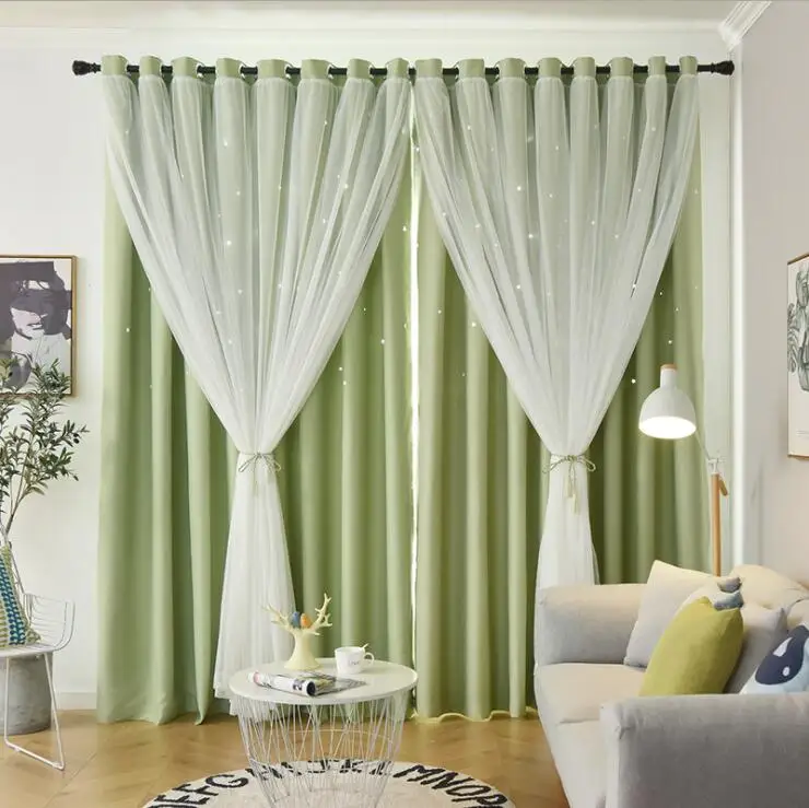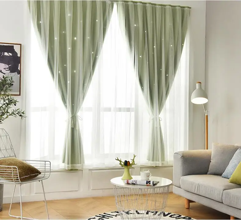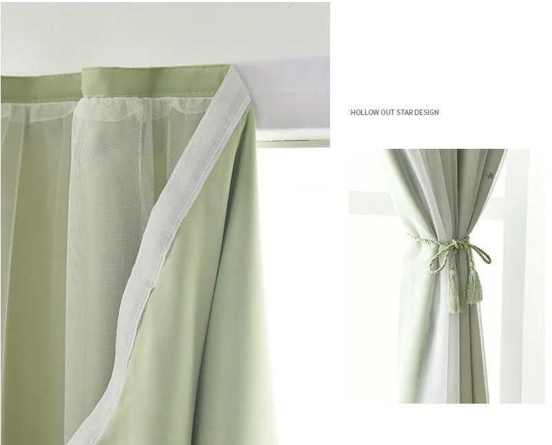 Amazon hot selling Korea style blackout combined with sheer curtains double layer blackout curtains for living room
