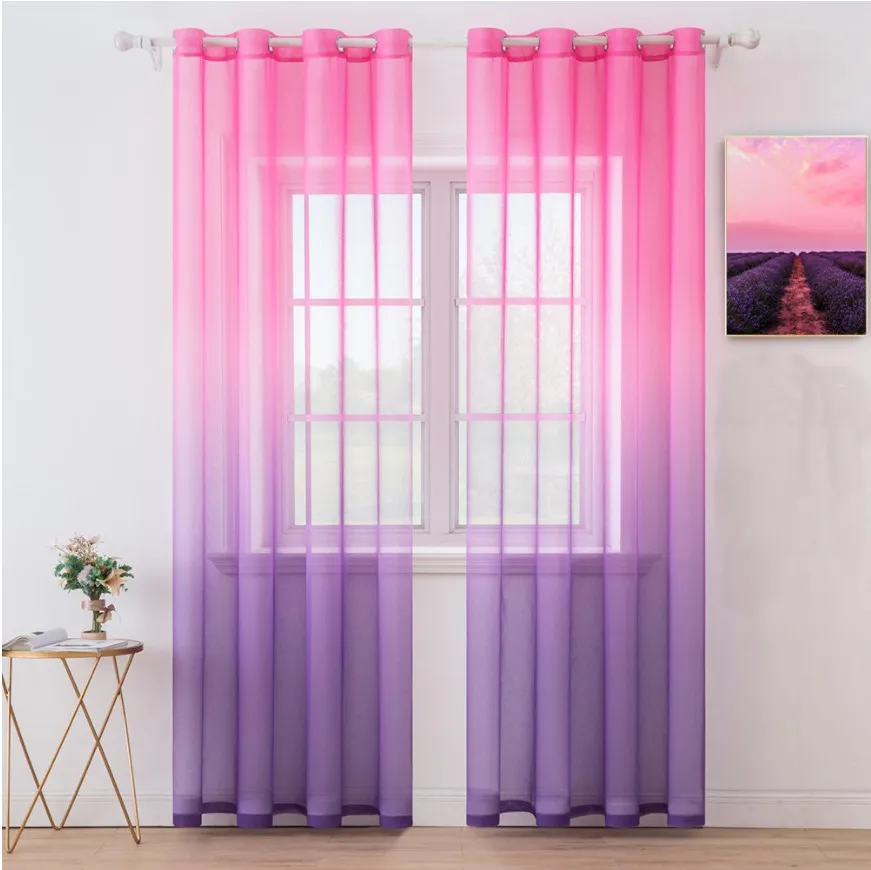 Pink and Purple color Wholesale cheap sheer curtains Gradient sheer curtains Multi-colors for living room