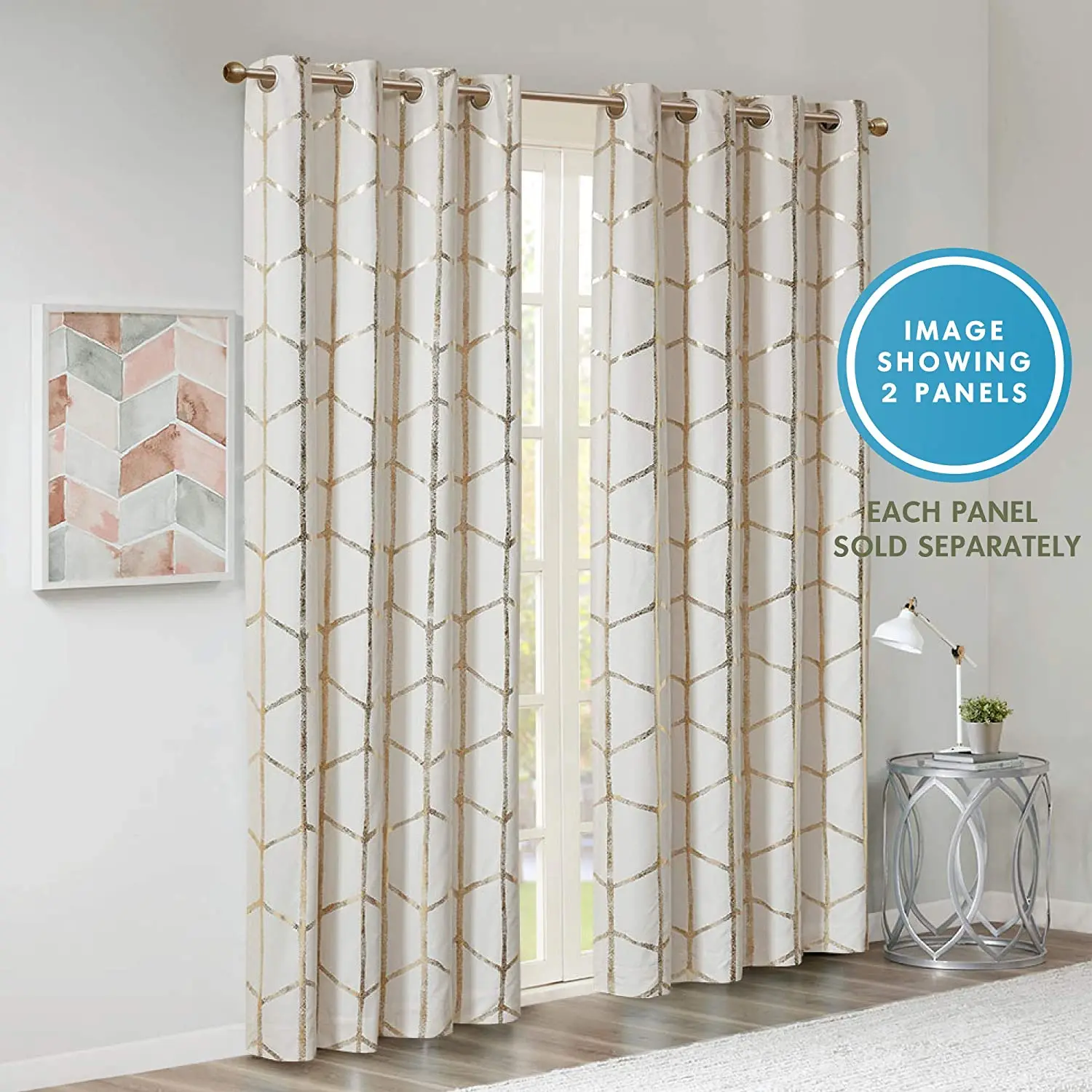 Home Doors, Windows ,Curtains & Signage Curtains Window Curtains Shaoxing Bangfa Textile Co., Ltd. Raina Total Blackout Metallic Print Grommet Top Window Curtain Panel Thermal Insulated Light Blocking Drape for Bedroom
