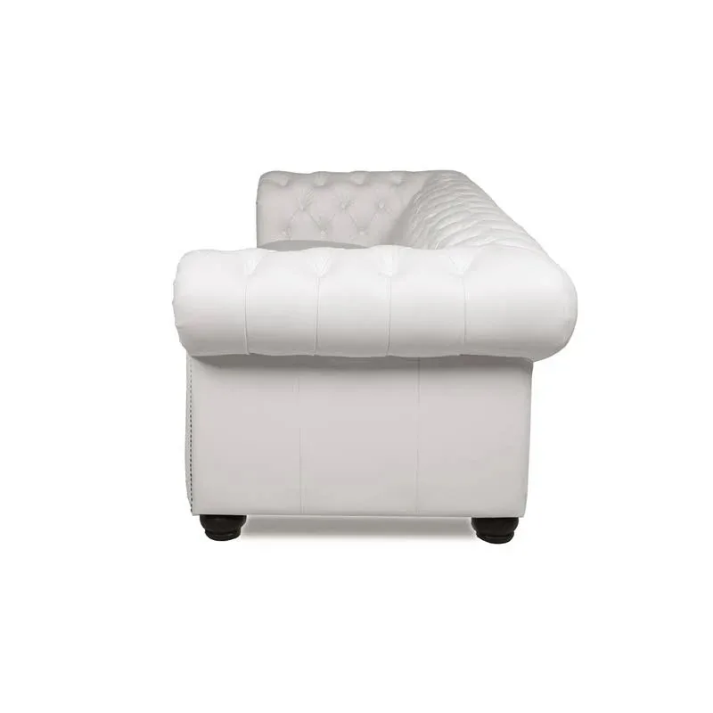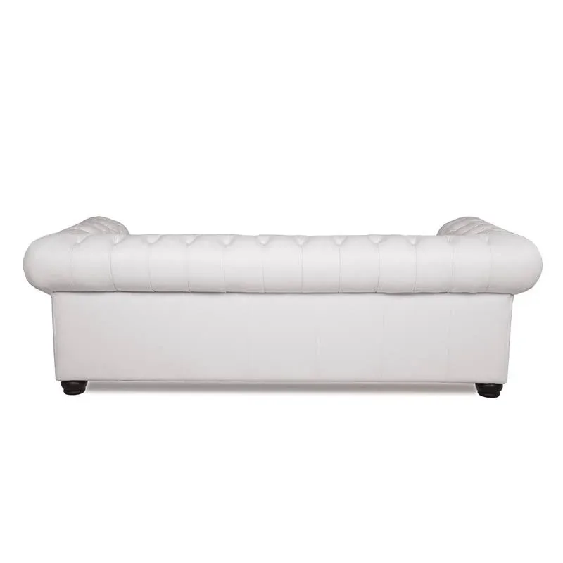 Chesterfield Button Tufted Off White High Back Sofa Set For Living Room