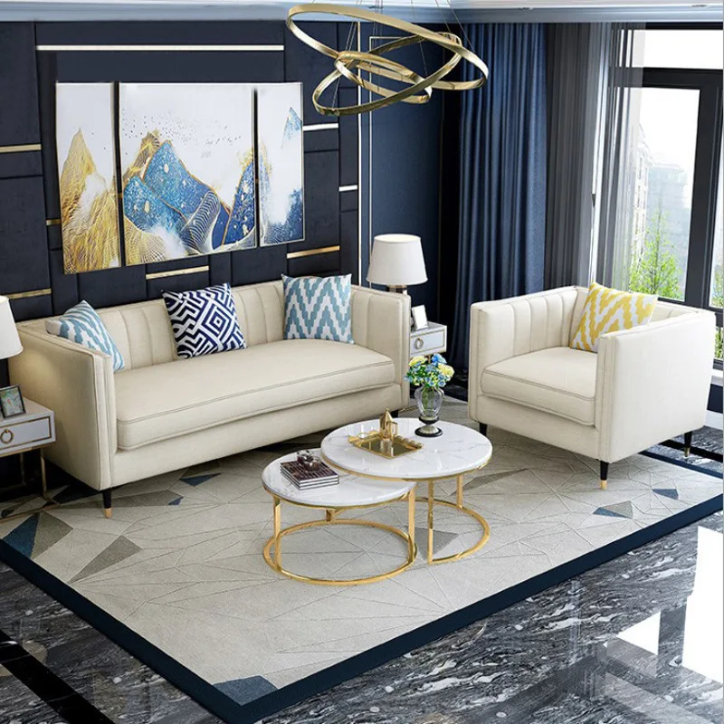 Contemporary Nordic Royal Luxury White And Gold Arm Sofa Set Furniture