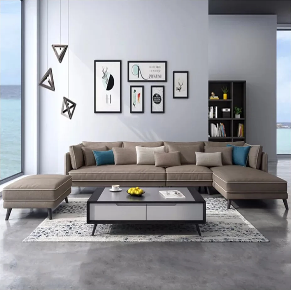 Home Movable Housing Furniture & Household Appliances Living Room Furniture Sofa Foshan Zhongcun Furniture Co., Ltd. Modern Sectional Long Couch Corner Sofa Sitting Room Furniture