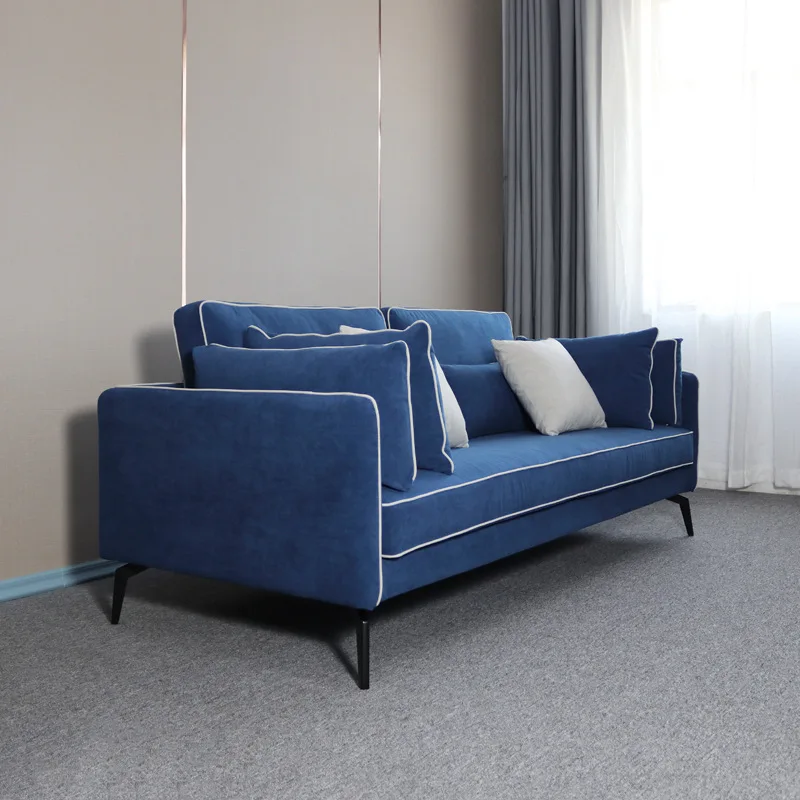 Home Movable Housing Furniture & Household Appliances Living Room Furniture Sofa Foshan Zhongcun Furniture Co., Ltd. Wholesale 3 Seats Modern Blue Velvet Sofa Set Furniture