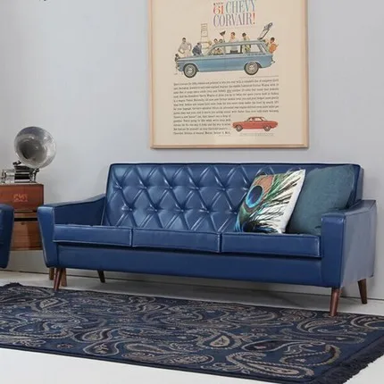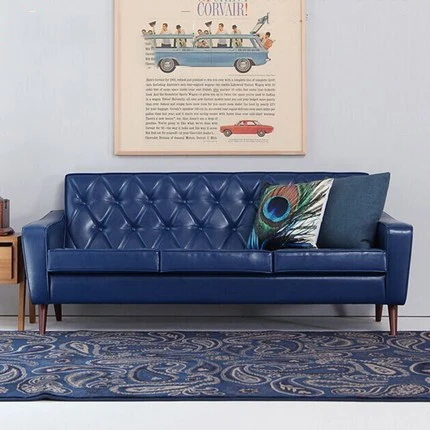 Modern Navy Blue Leather Sofa Couches Living Room Furniture Sofa Set