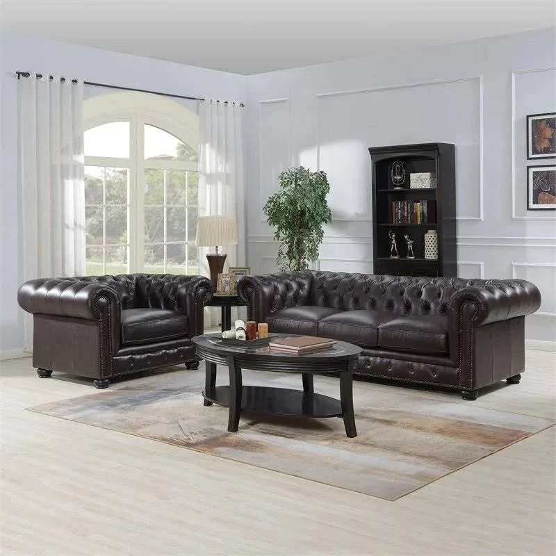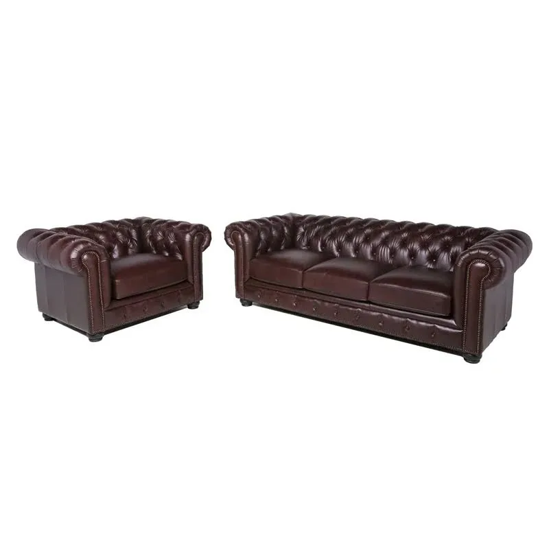 Home Movable Housing Furniture & Household Appliances Living Room Furniture Sofa Foshan Zhongcun Furniture Co., Ltd. Vintage Style Leather Sofa Wooden Foot Chesterfield Sofa For Living Room