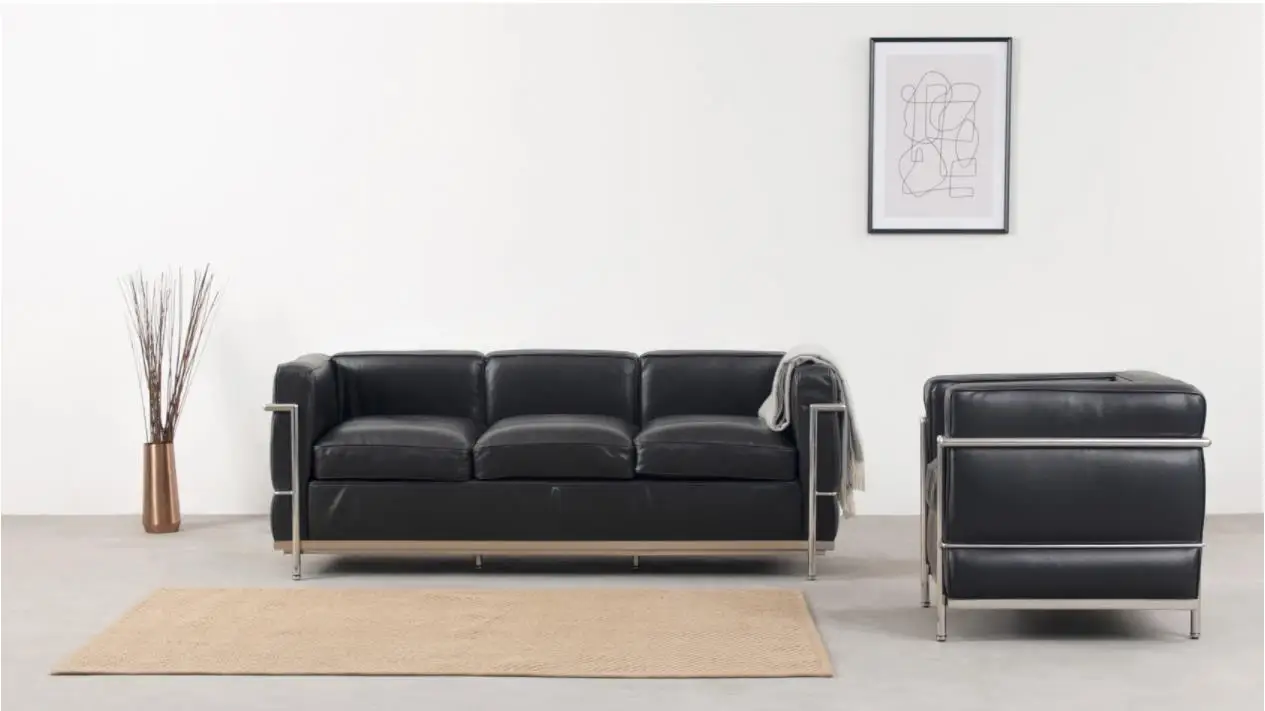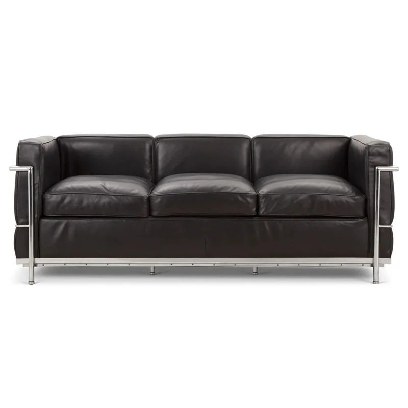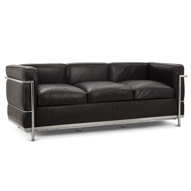 3 Seater Sofa Black Stainless Steel Frame Leather Sofa Living Room Sofa Set Furniture