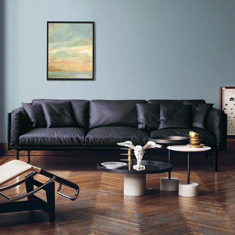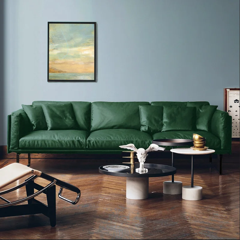 Italian Half Leather Simple Design Green Leather Living Room Furniture