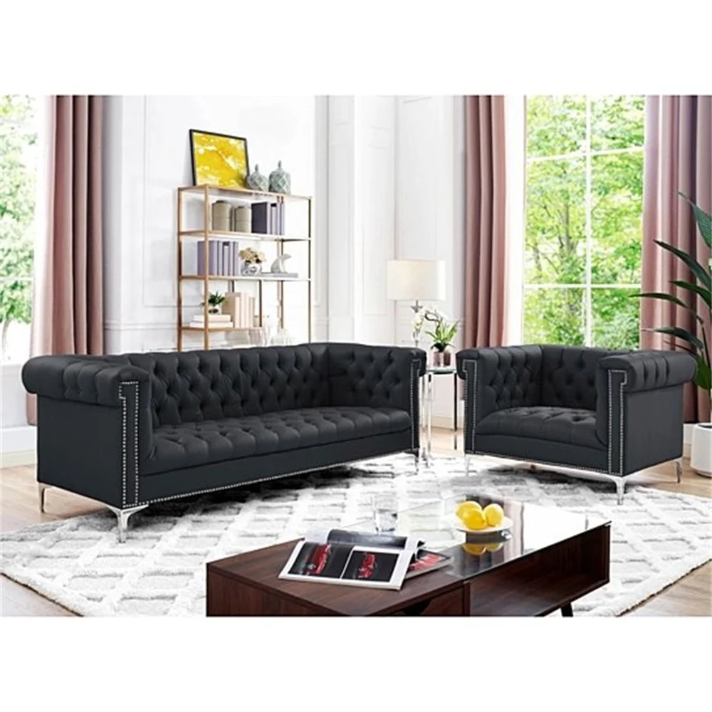 Home Movable Housing Furniture & Household Appliances Living Room Furniture Sofa Foshan Zhongcun Furniture Co., Ltd. American Style Single Seat Black Leather Furniture Chesterfield Sofa Couch