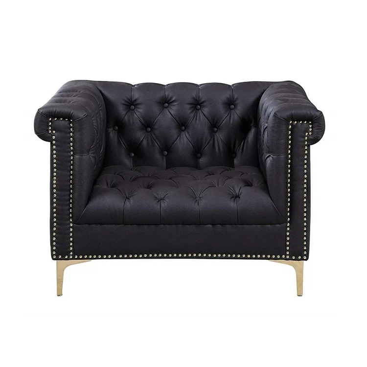 American Style Single Seat Black Leather Furniture Chesterfield Sofa Couch