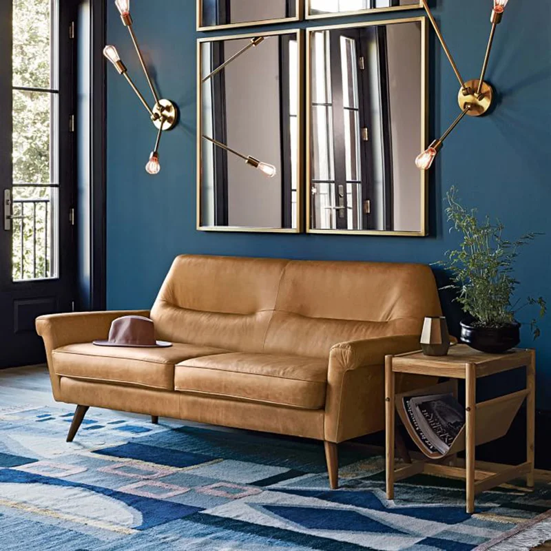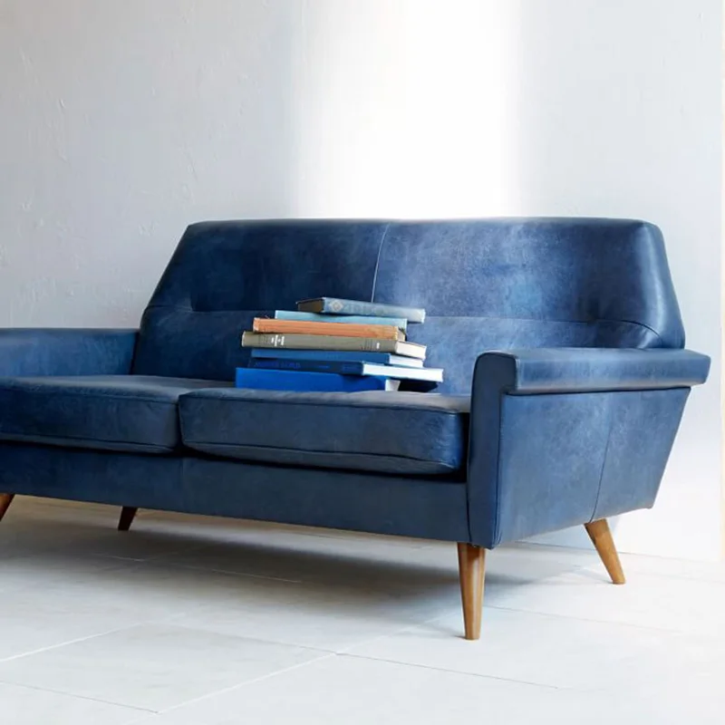 3 Seat American Style Blue Sofa Set Leather Modern For Room