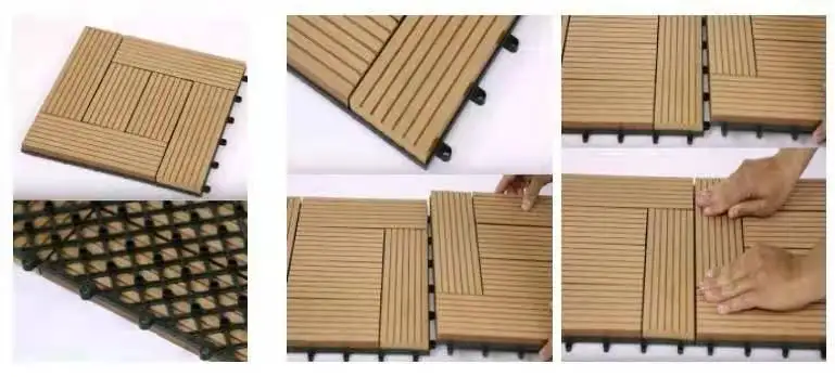 waterproof DIY wood-plastic-composite decking tile interlocking